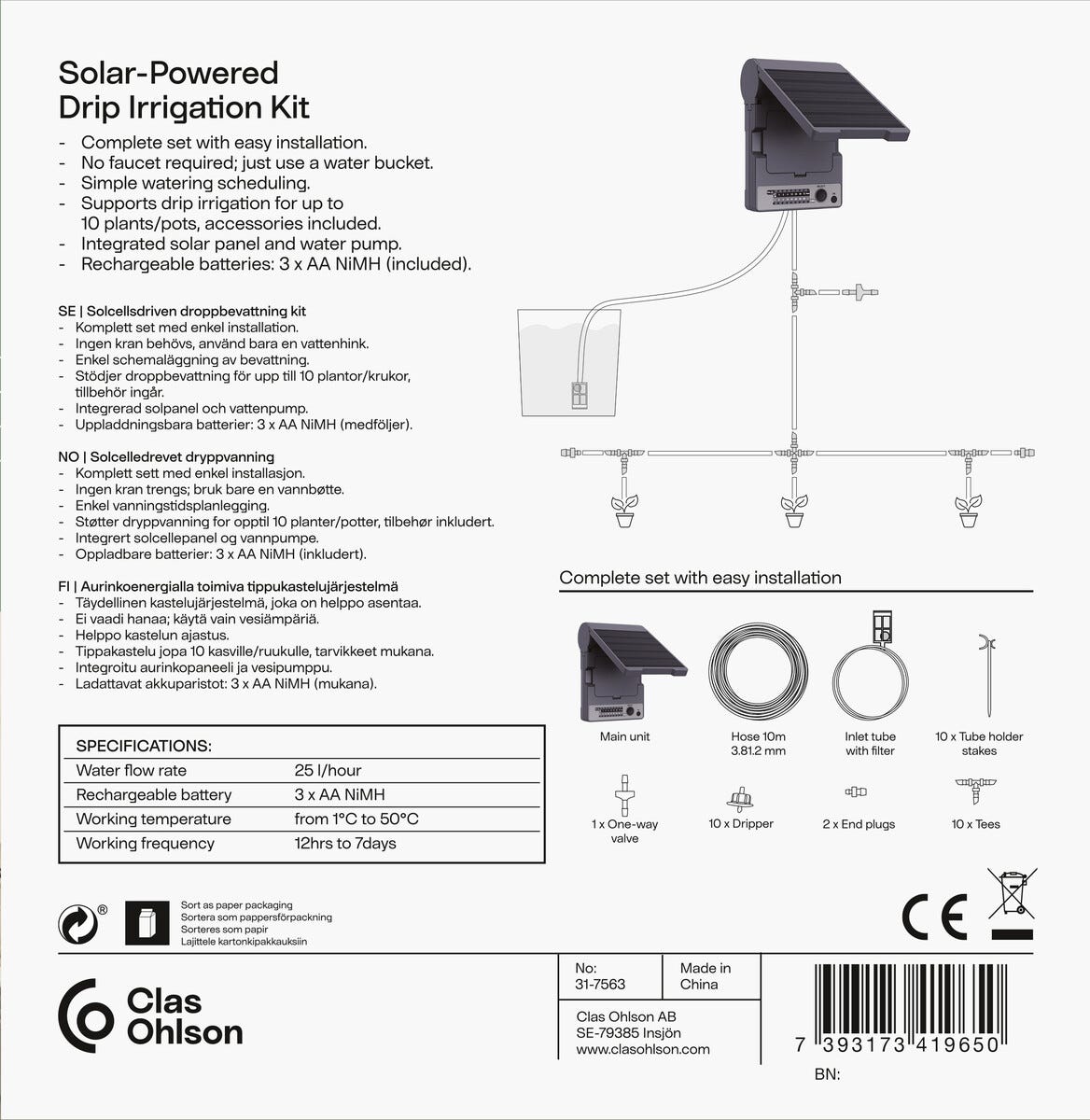 • Brukervennlig solcelledrevet vanning – lett å installere og bruke.