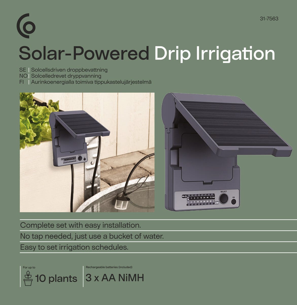 • Dryppvanning med solpanel – vanningssystem for opptil 10 planter.
