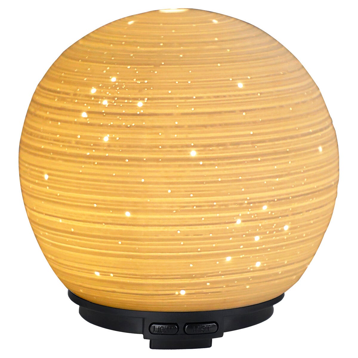 • Globeformet diffuser – liten, rund duftspreder med LED-lys.