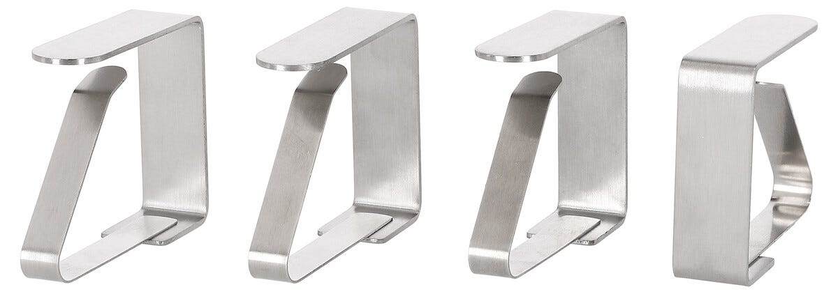 • 4 klemmer av rustfritt stål som passer både campingbord og hagebord.