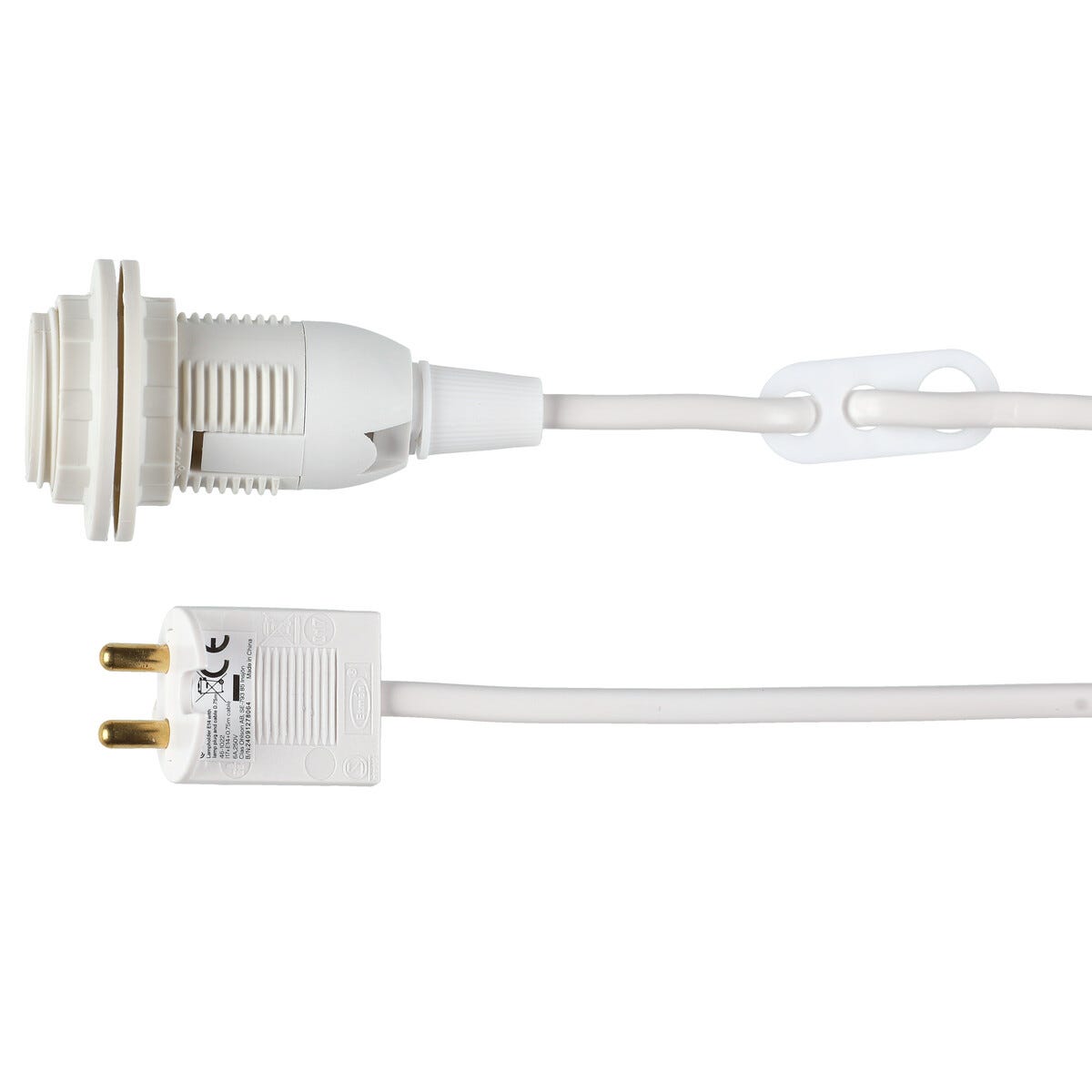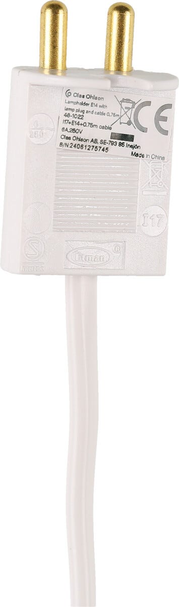 • E14-pæreholder med lampestøpsel – passer i ujordede lampeuttak og er lett å koble til.