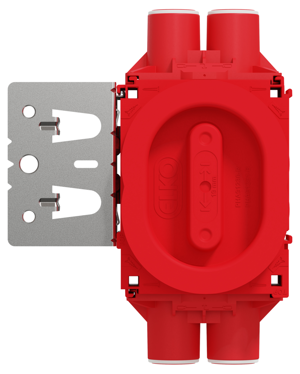 • ELKO Flexi+ 1,5-boks – veggboks, lav med stenderfeste og 6 løp for 16/20 mm-rør.
