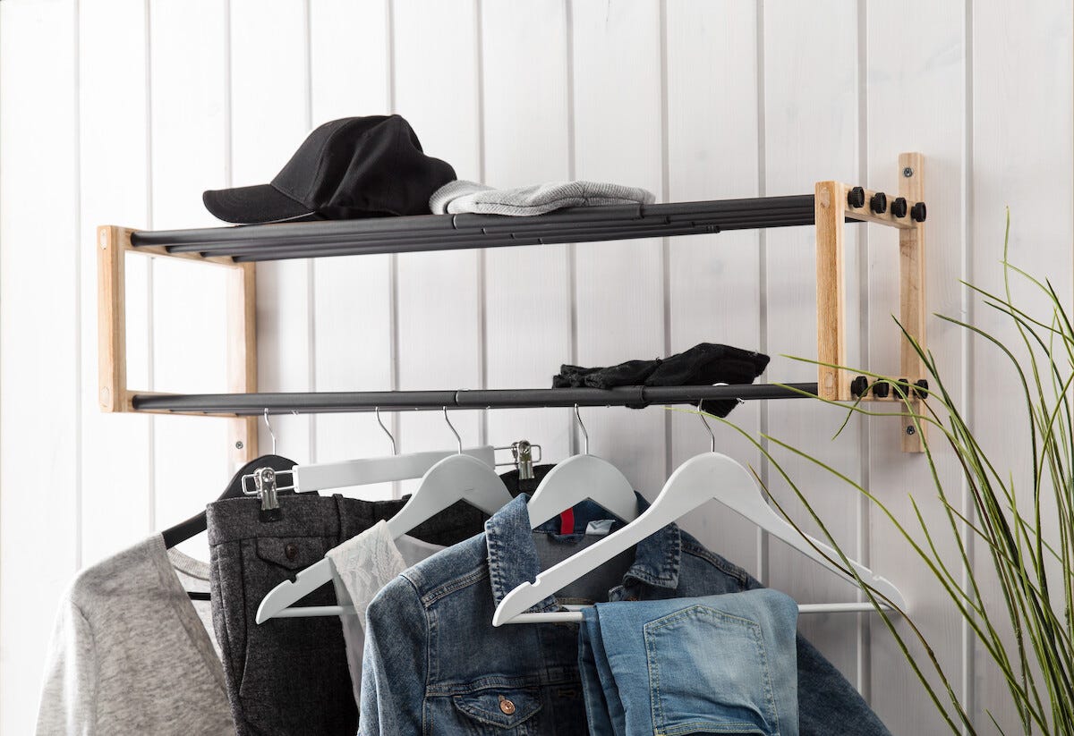 Ekspanderbar hattehylle tre/metall