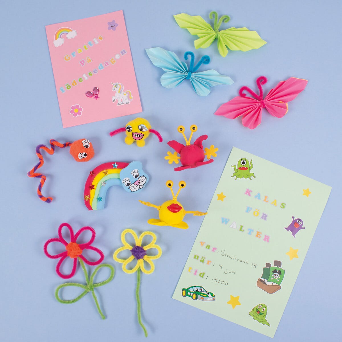 • 52 pomponger, 24 piperensere, 20 figurdeler, 2 isopordyr, 6 isoporkuler.
