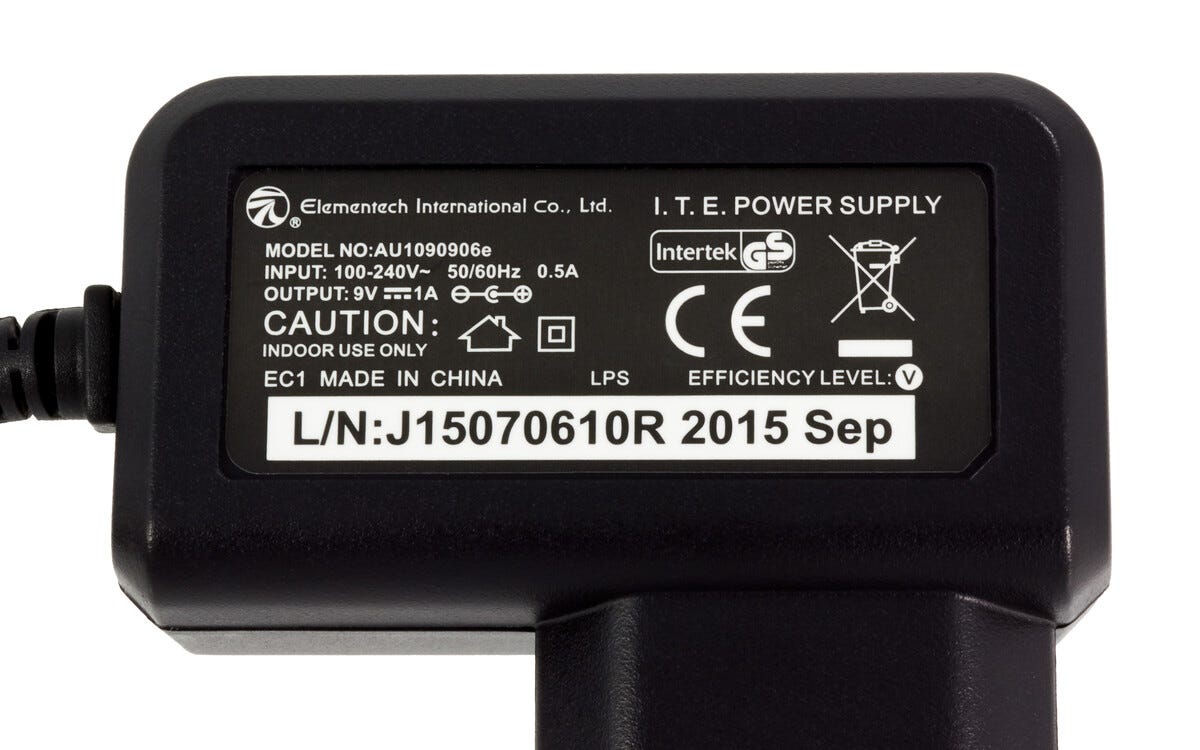 Electia 9 V/1 A, strømadapter