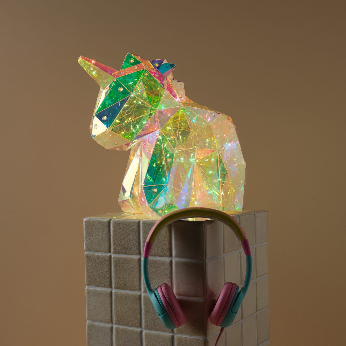 • Dekorativ enhjørningsfigur for barne- og ungdomsrom – stemningsfull fargebelysning.