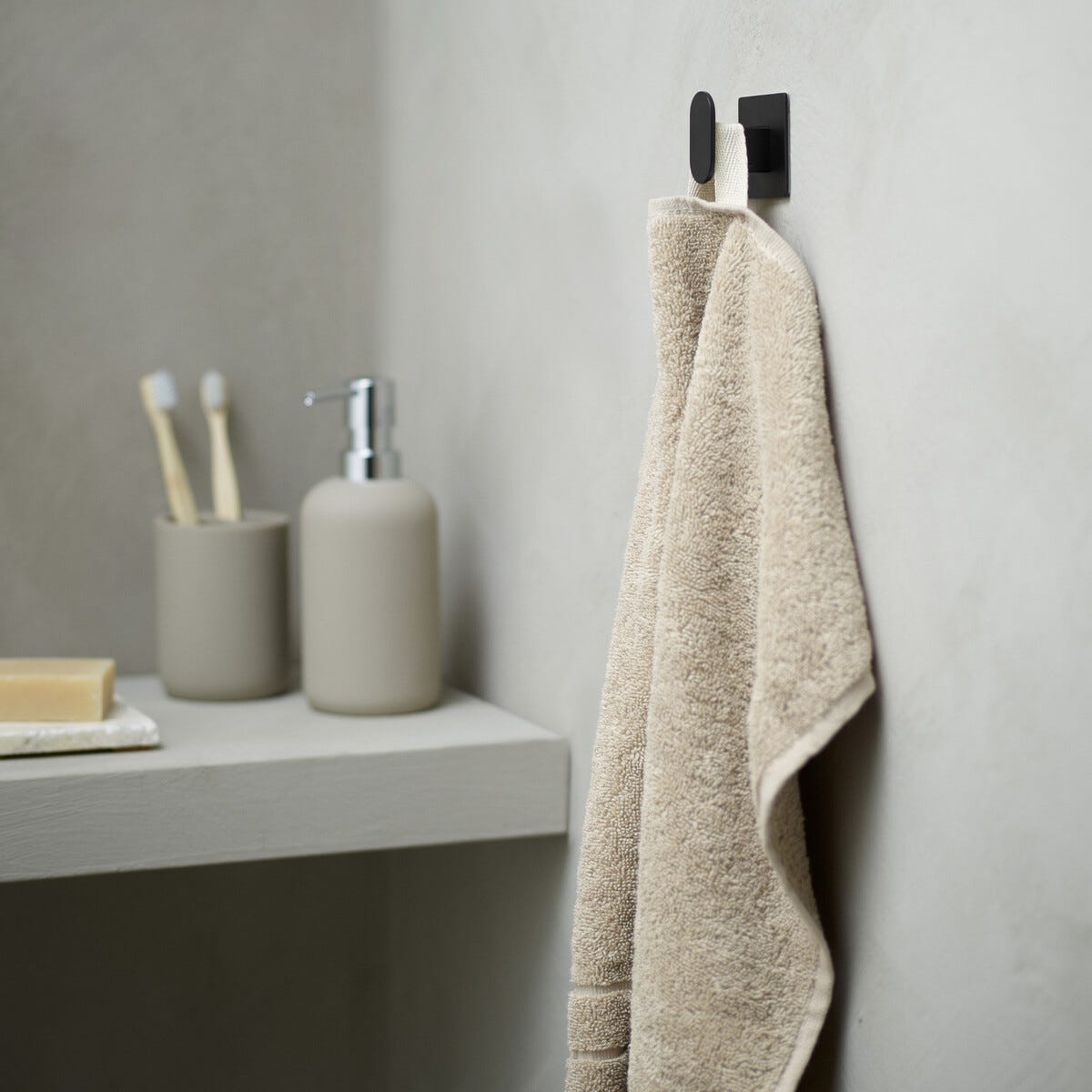 • Lettplassert håndklekrok – festes med teip på fliser.