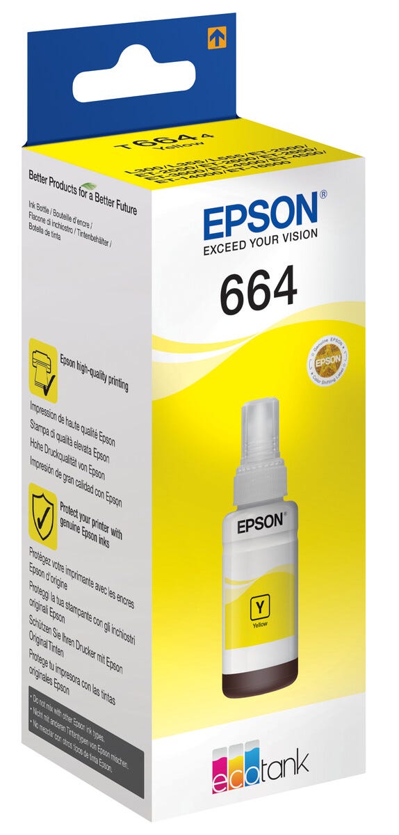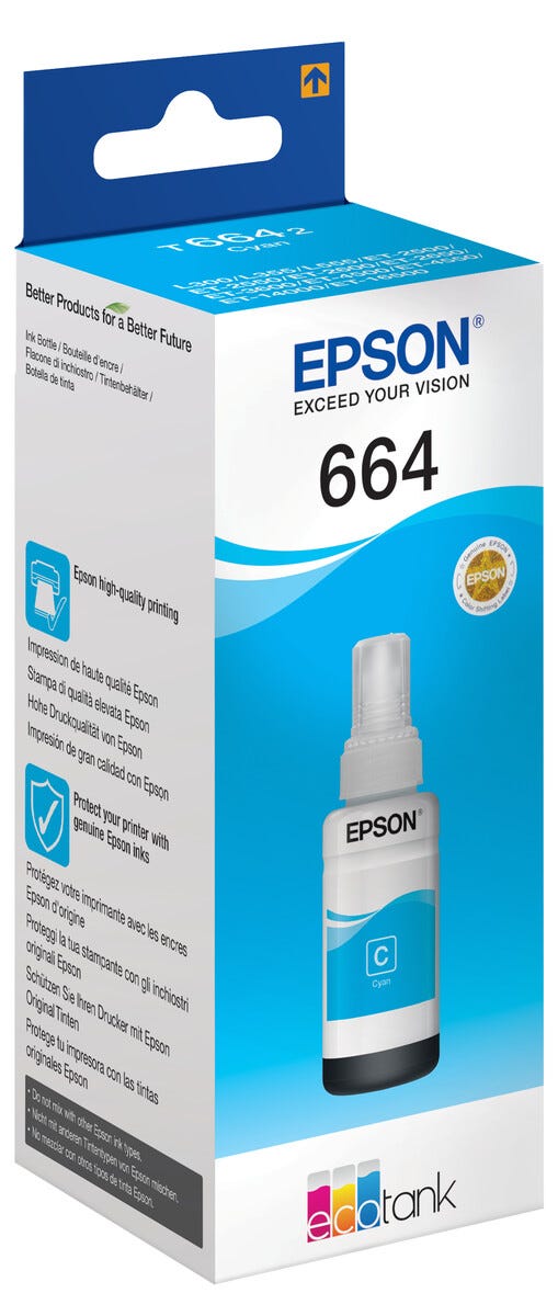 • Epson EcoTank 664 påfyllingsblekk i smart beholder.