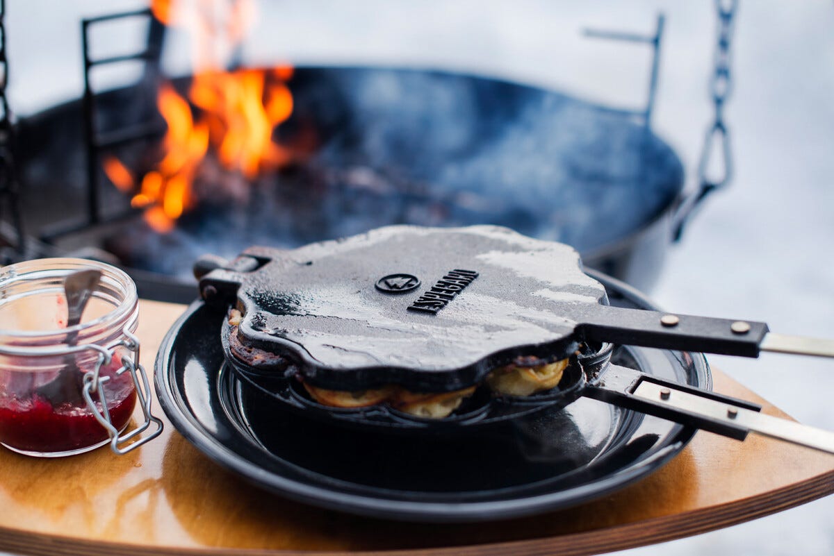 • Stek gyllenbrune vafler ved bålet – samle familien og kos dere.