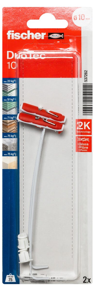 Fischer gipsanker DuoTec 10 K NV uten skrue, 2-pakning