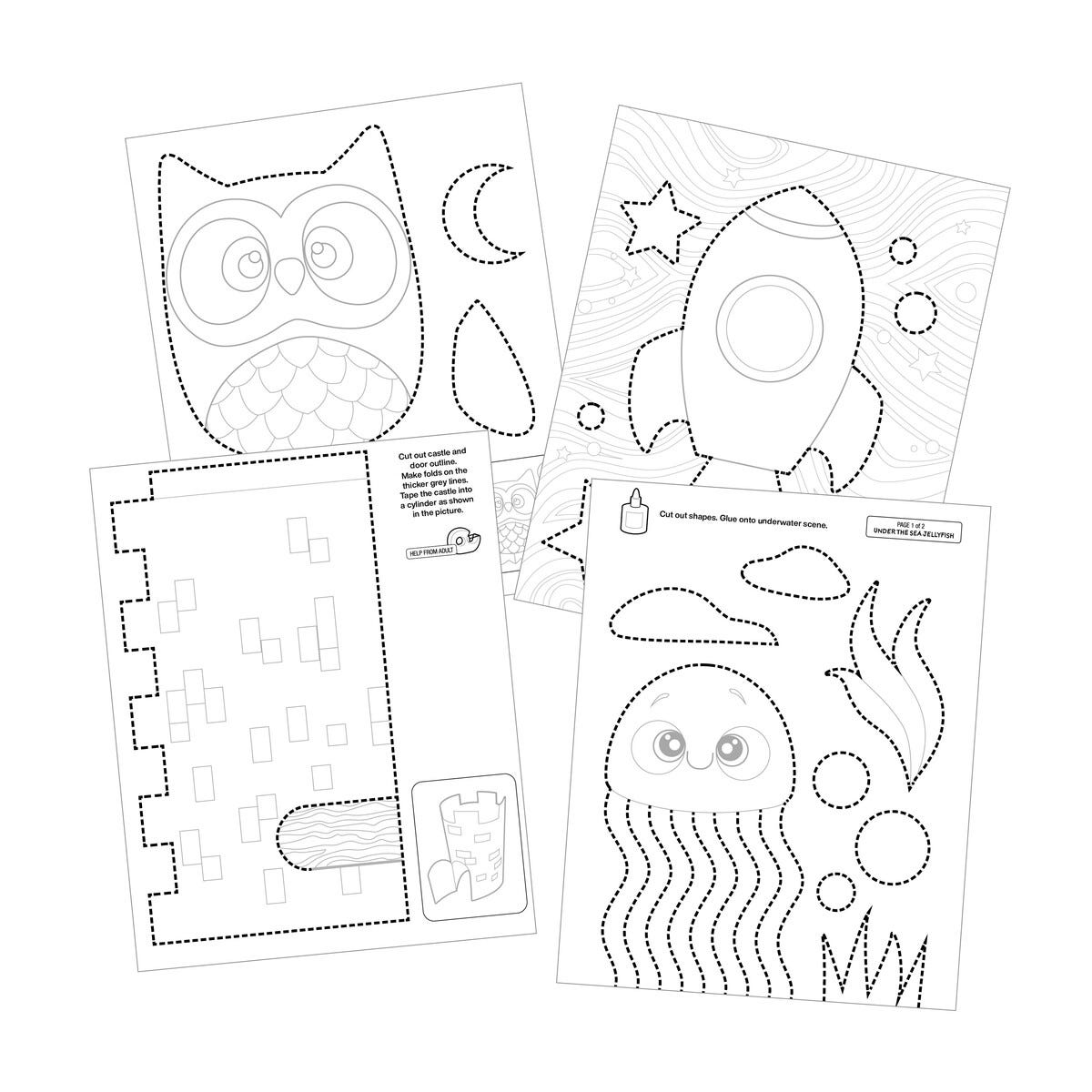 • Fiskars Cut & Learn barnesaks og bok, 30 sider til å klippe og fargelegge.