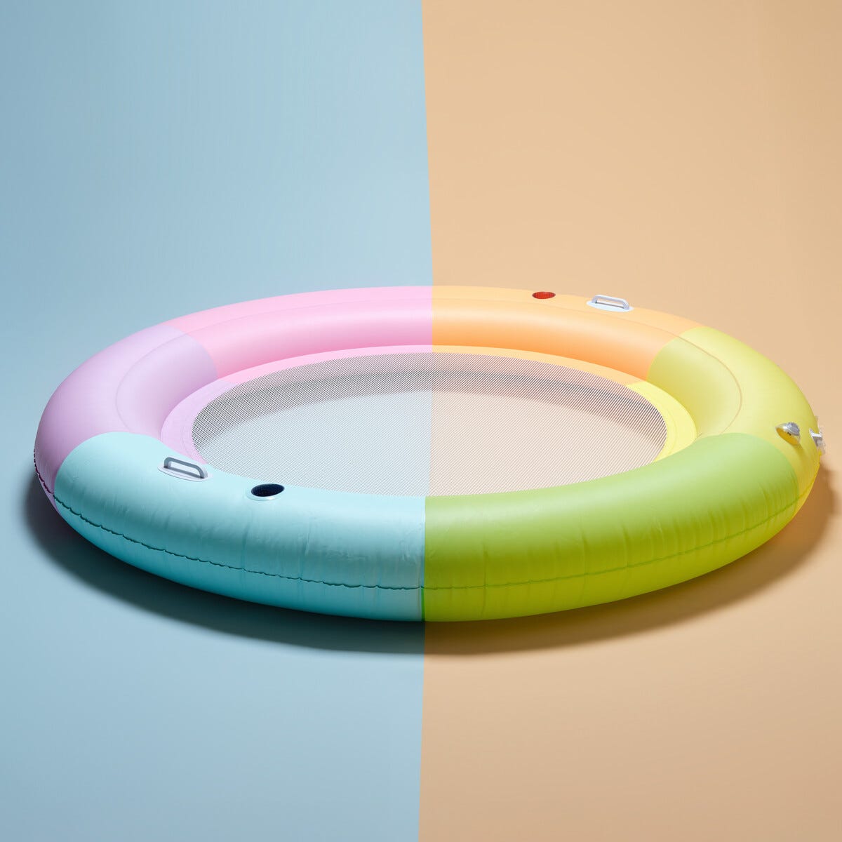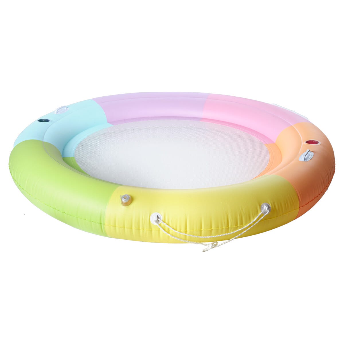 • Oppblåsbar vannhengekøye i glade pastellfarger til basseng, innsjø eller hav.