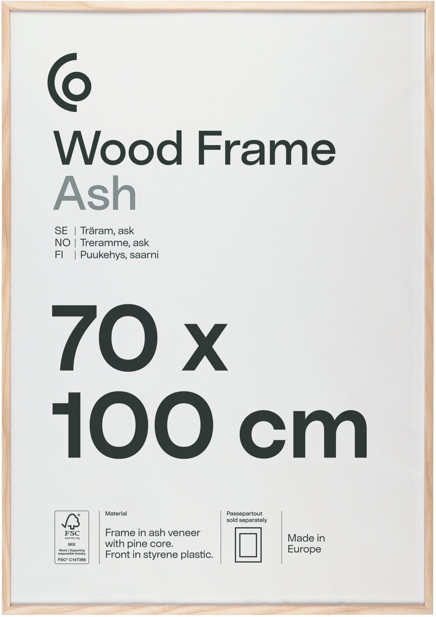 • Ramme i massivt tre med finer (ask, eik eller valnøtt) – FSC®-merket fra europeiske skoger.