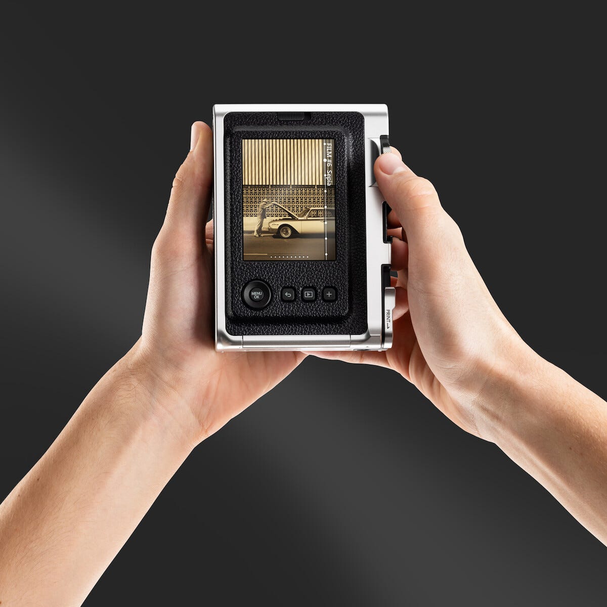 • Retroinspirert kamera i analog stil som skriver ut bildene umiddelbart.