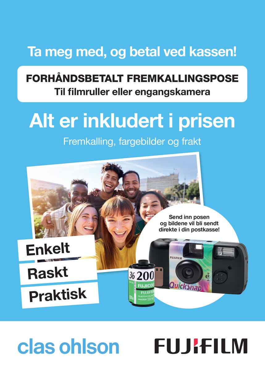 • Fotopose hvor alt inngår i prisen – fremkalling, papirbilder og frakt.