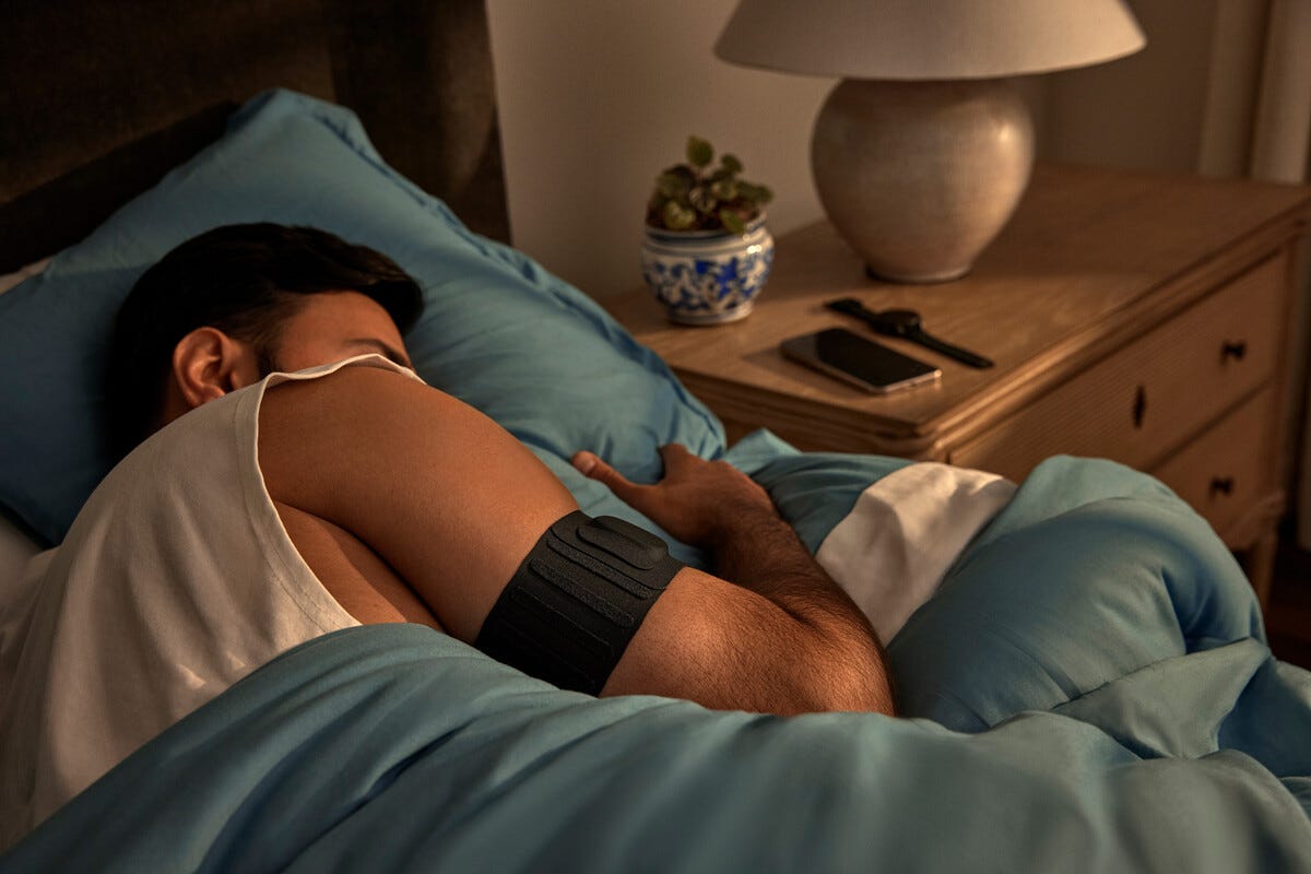 • Måler søvn, pust og restitusjon på overarmen.