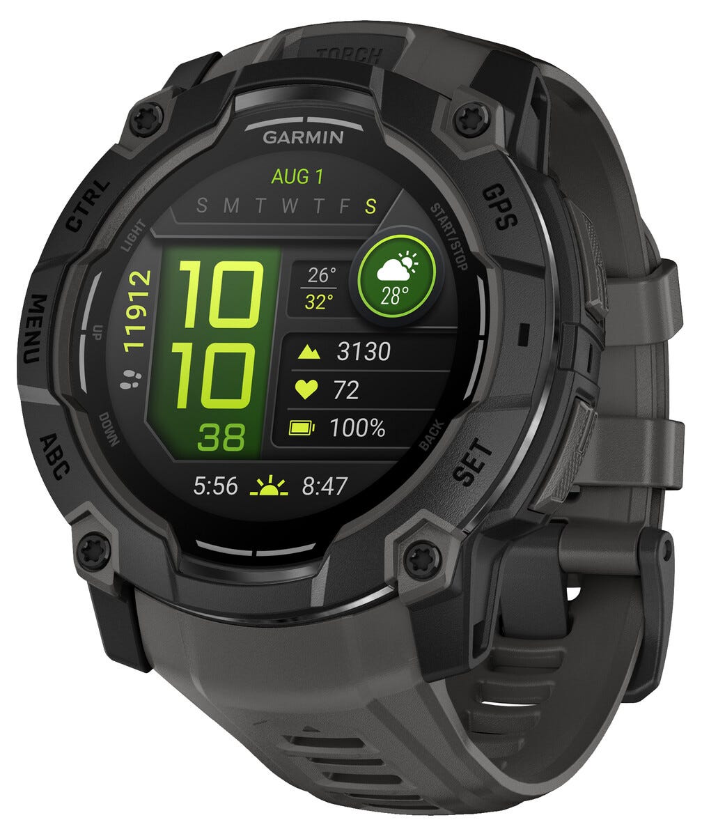 • Robust AMOLED-klokke med flerbånds GPS og innebygd lommelykt.