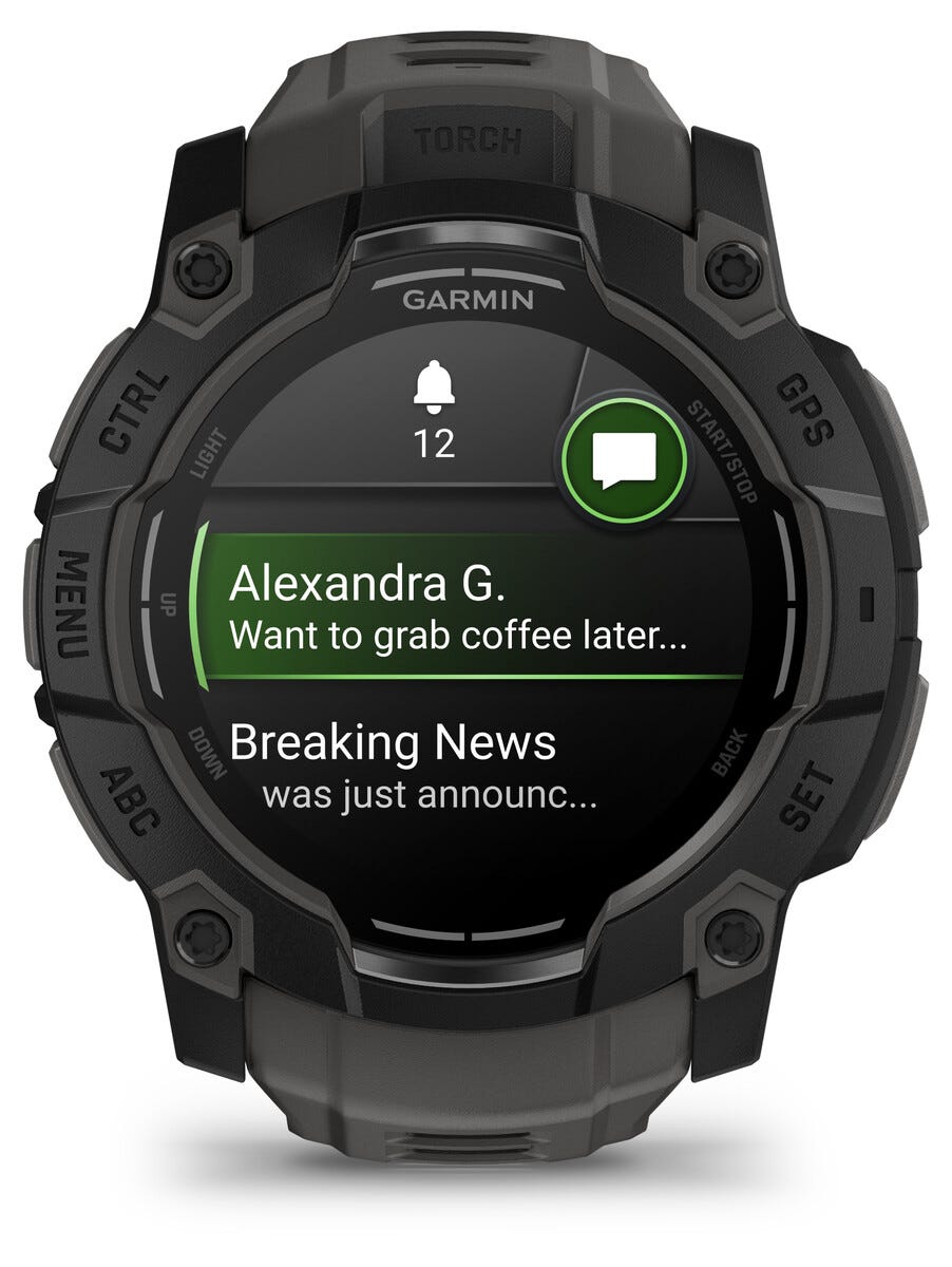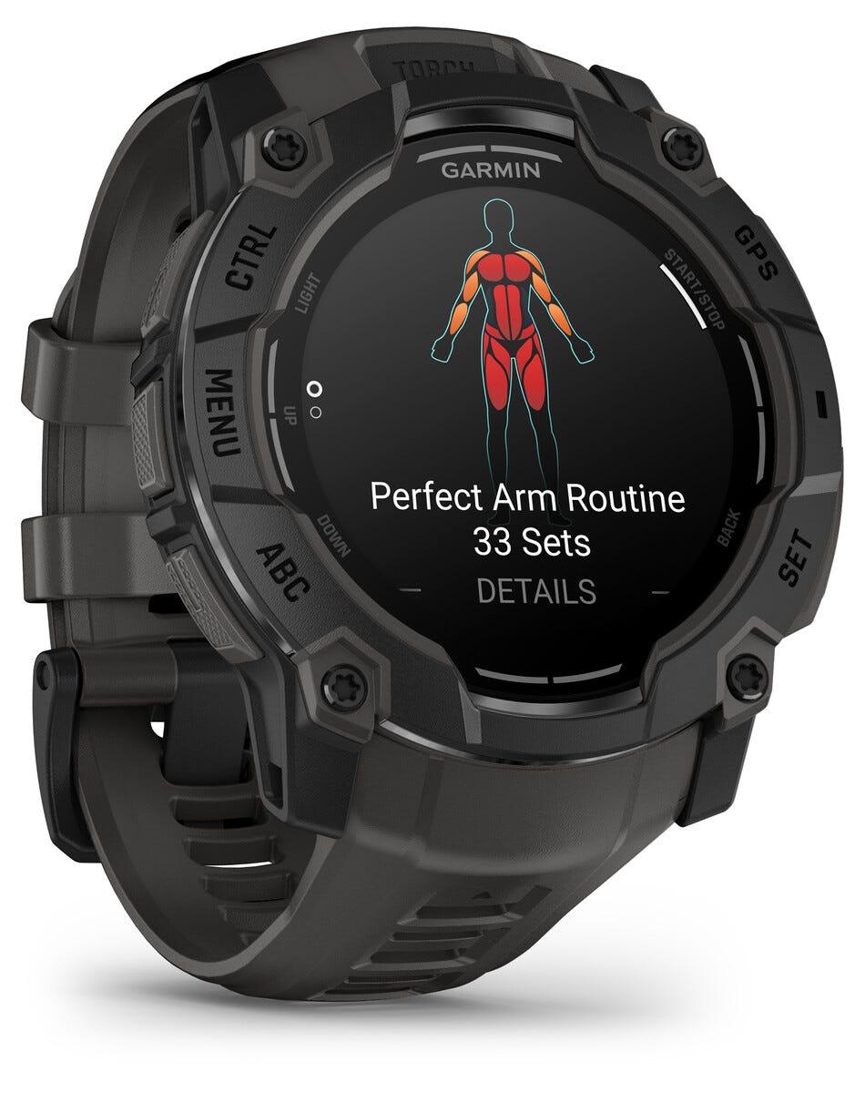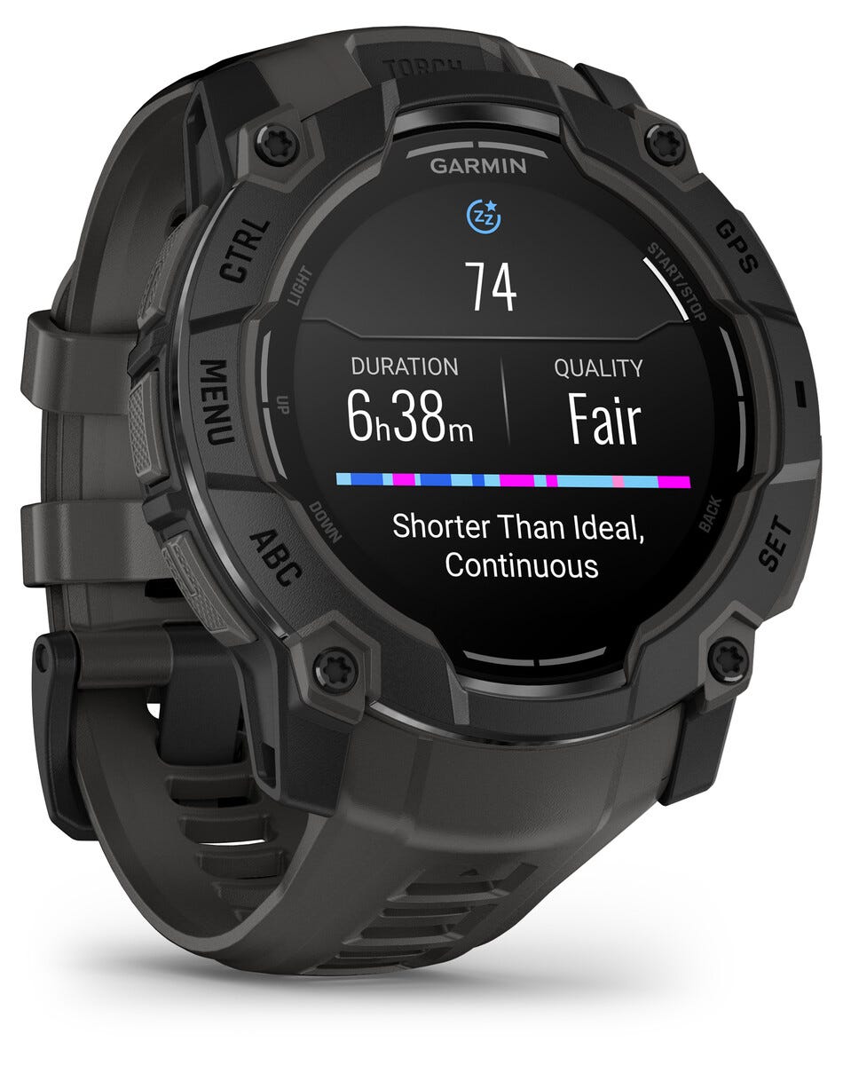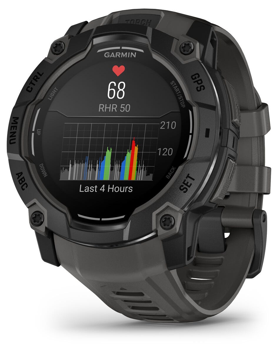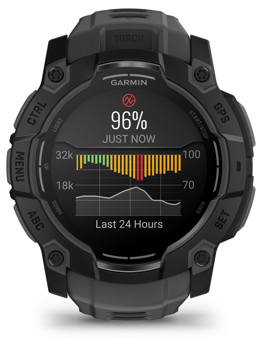 • Garmin Instinct 3 smartklokke med komplett helsesporing døgnet rundt.