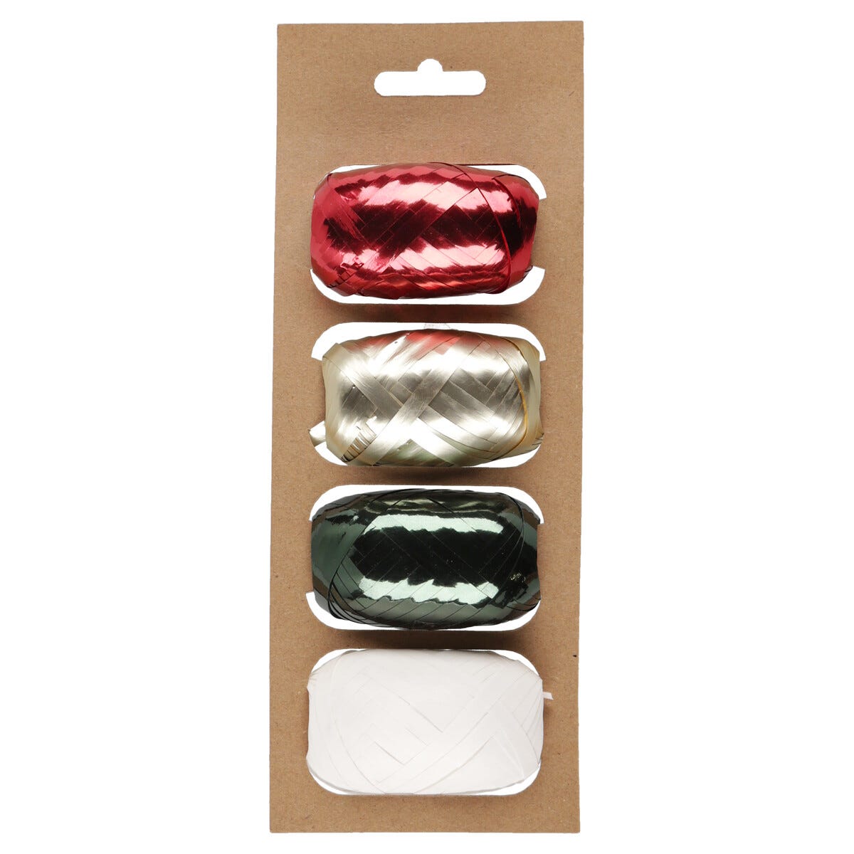 Gavebånd plast rød/gull/grønn/hvit 5 mm x 20 m 4-pakning