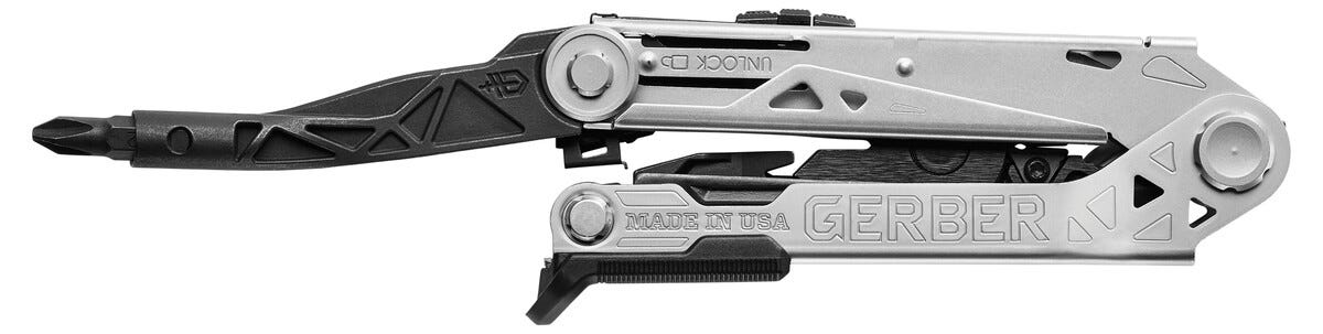 • Gerber Centerdrive – multiverktøy med enhåndsgrep og låsbare verktøy.