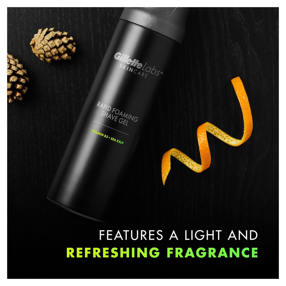 • Gillette Labs Rapid Foaming Shaving Gel for menn – uten alkohol og fargestoffer.