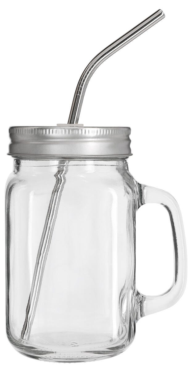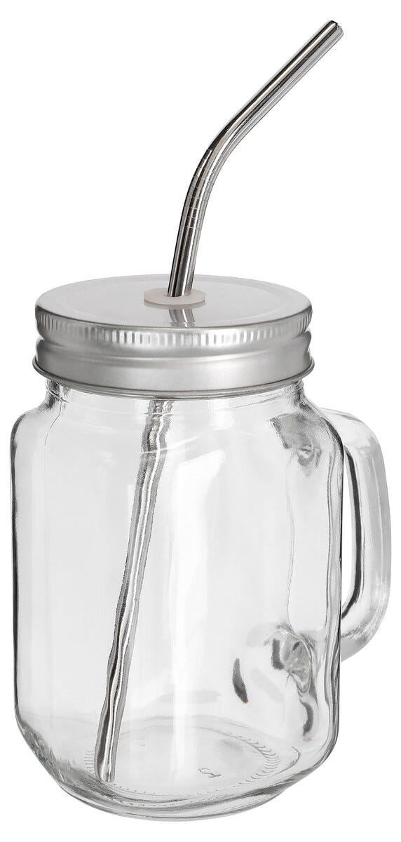 Glasskrus med metallsugerør