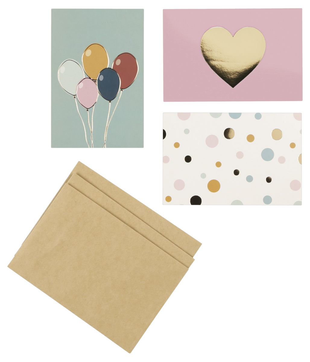 Gratulasjonskort fest 10 x 15 cm, med konvolutt, 3-pakning