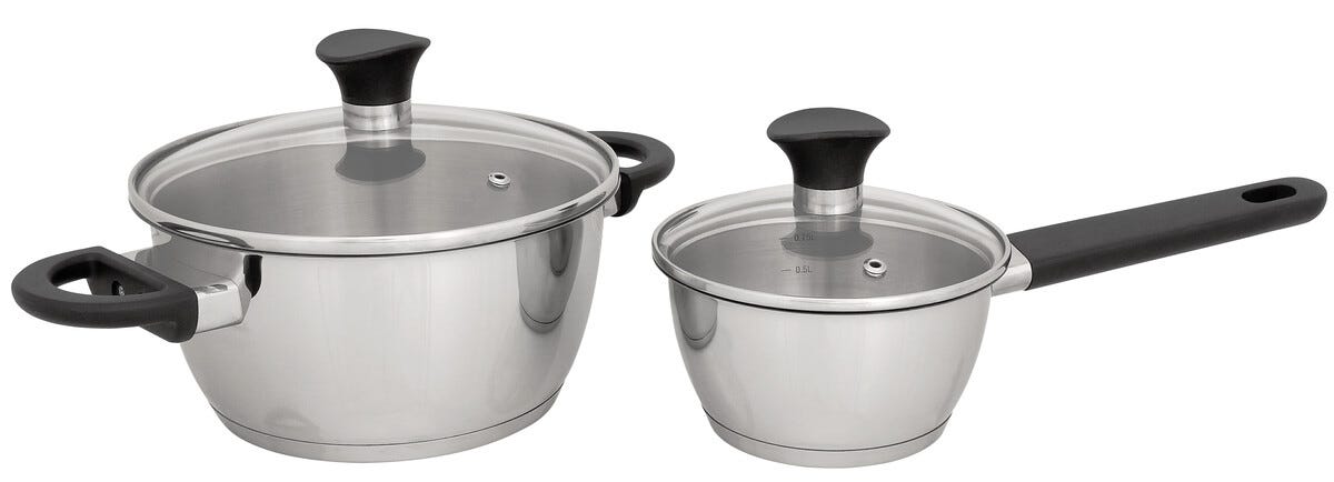 Gryte-/kasserollesett 2 deler, rustfritt stål