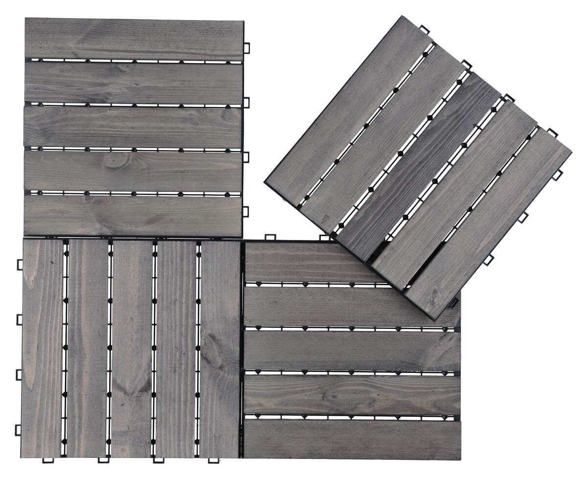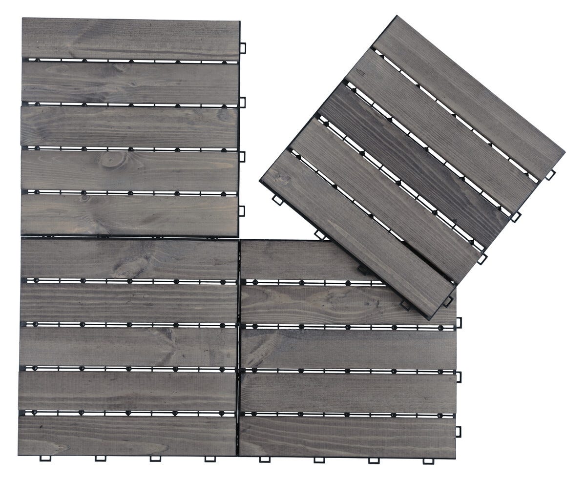 Gulvplater, treheller, gråbeiset gran, 4-pakning