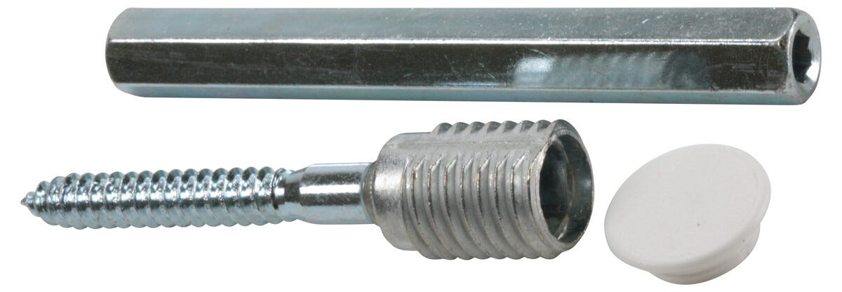 • Karmskruer av uherdet forsinket stål og dekkplugger av plast.
