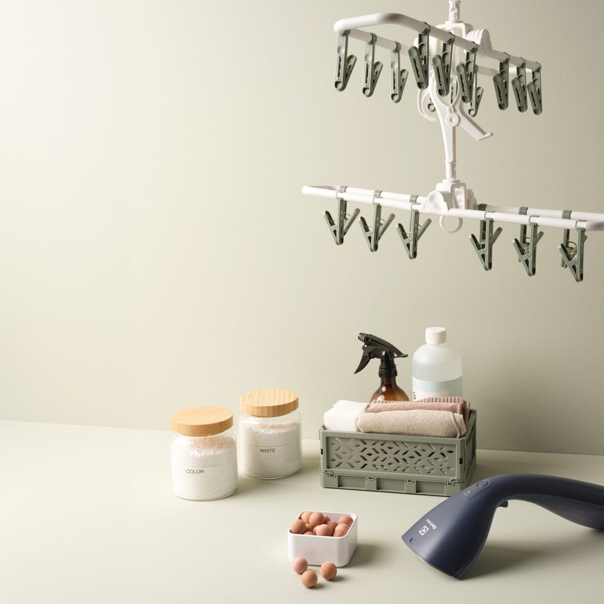 • Sammenleggbart tørkestativ med 12 klyper – flere kan kobles sammen.