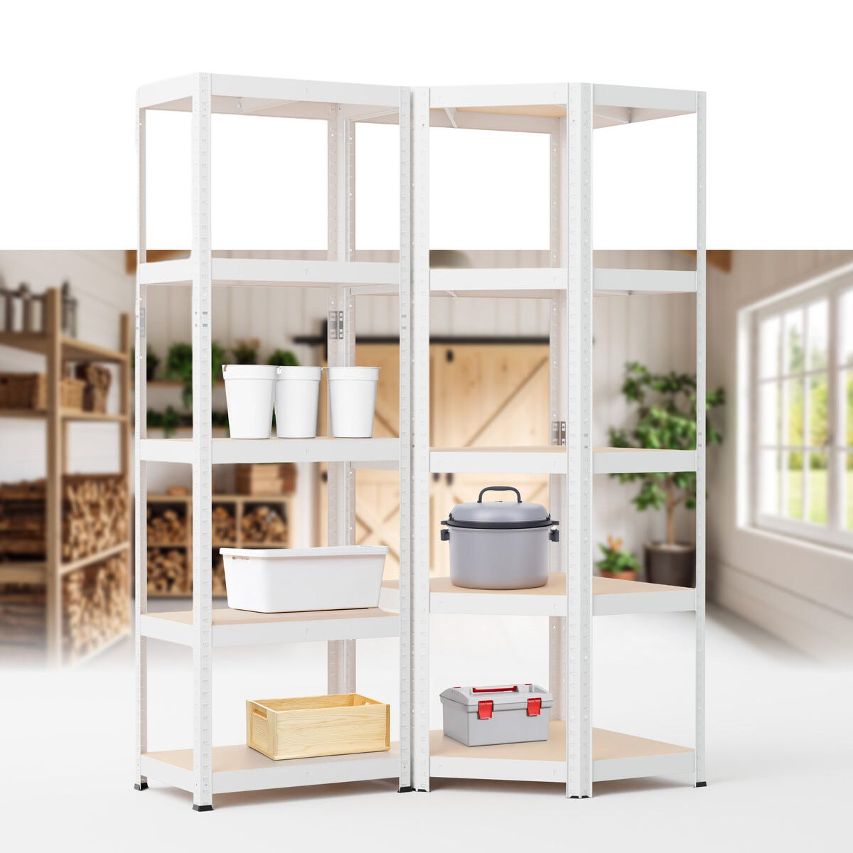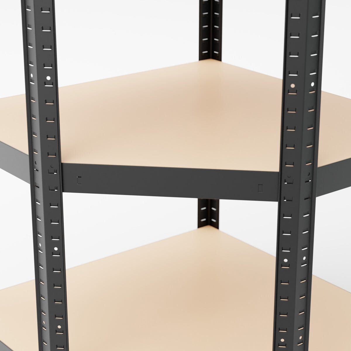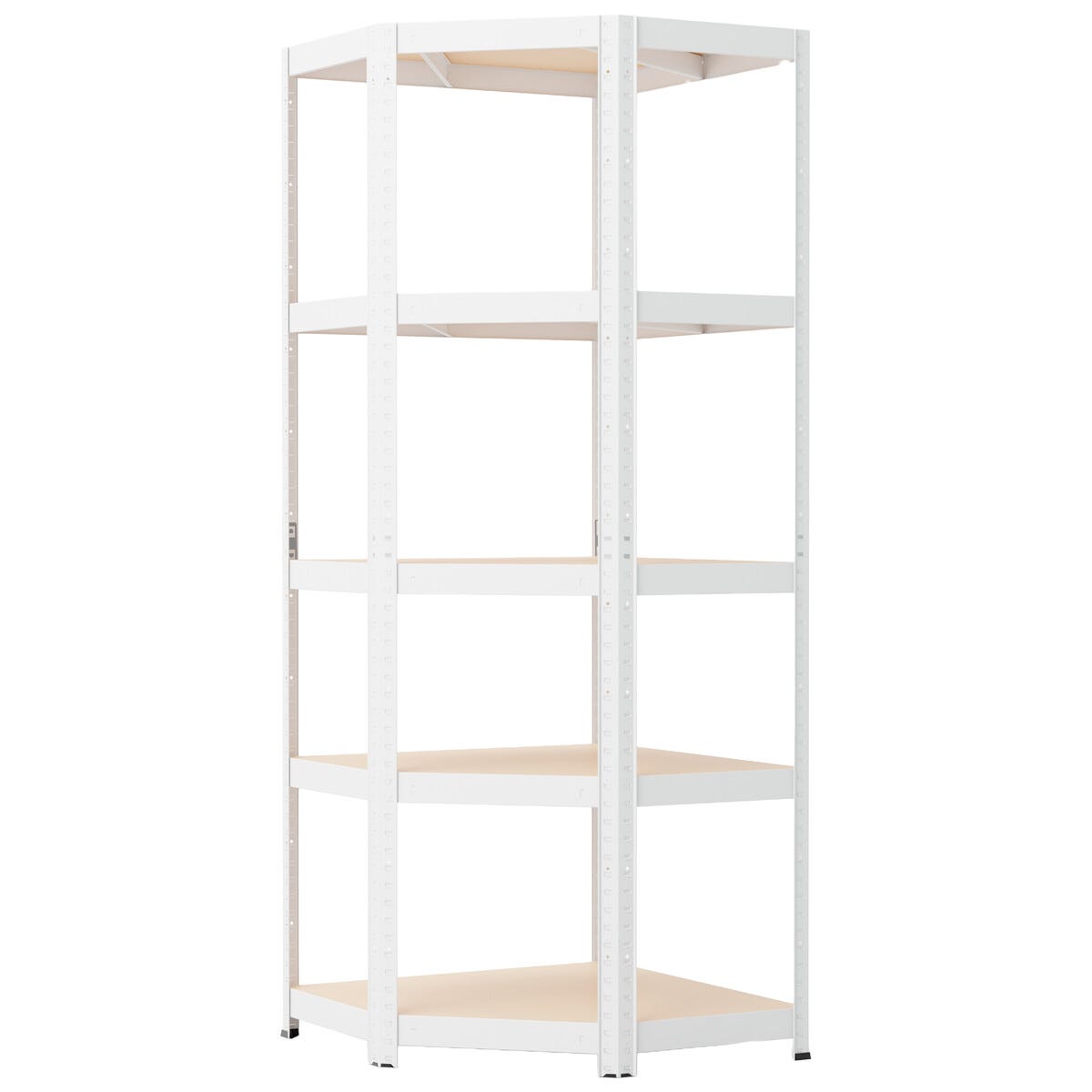 Hjørnehylle i metall for garasje eller bod, 5 hylleplater