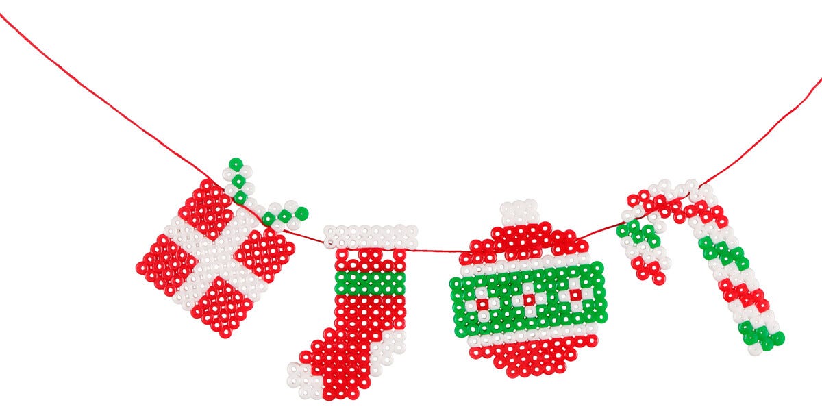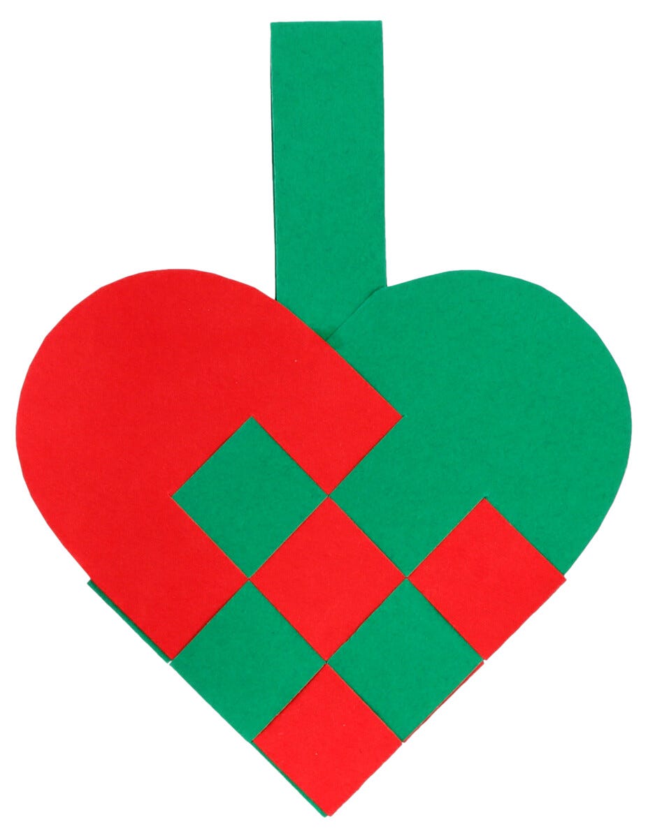 • Med perler, perlebrett, mønster og stensil for å lage flettede hjerter.