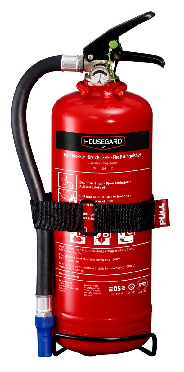 • Housegard brannslukningsapparat 13A 2 kg – slukker alle typer mindre branner.