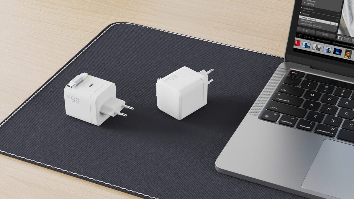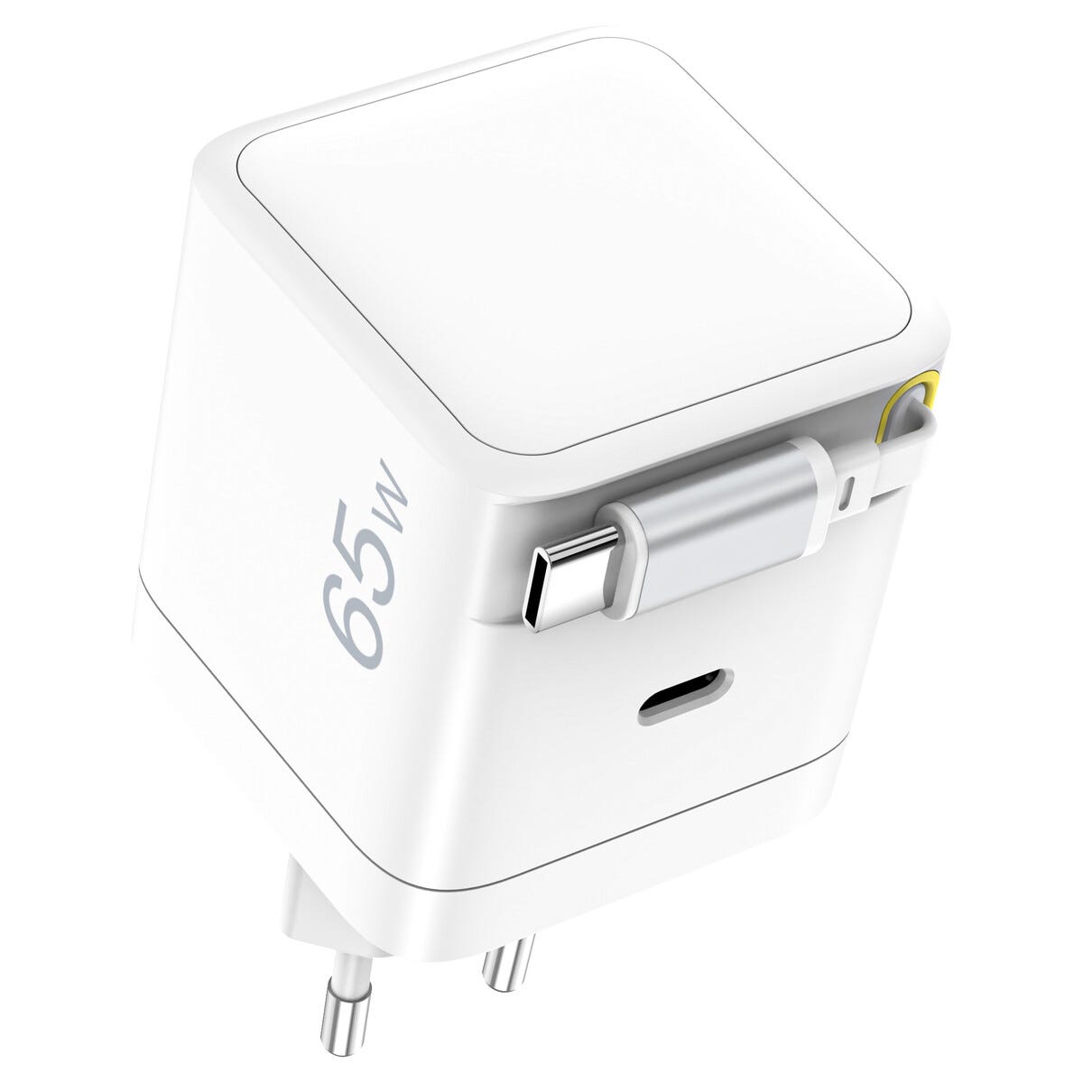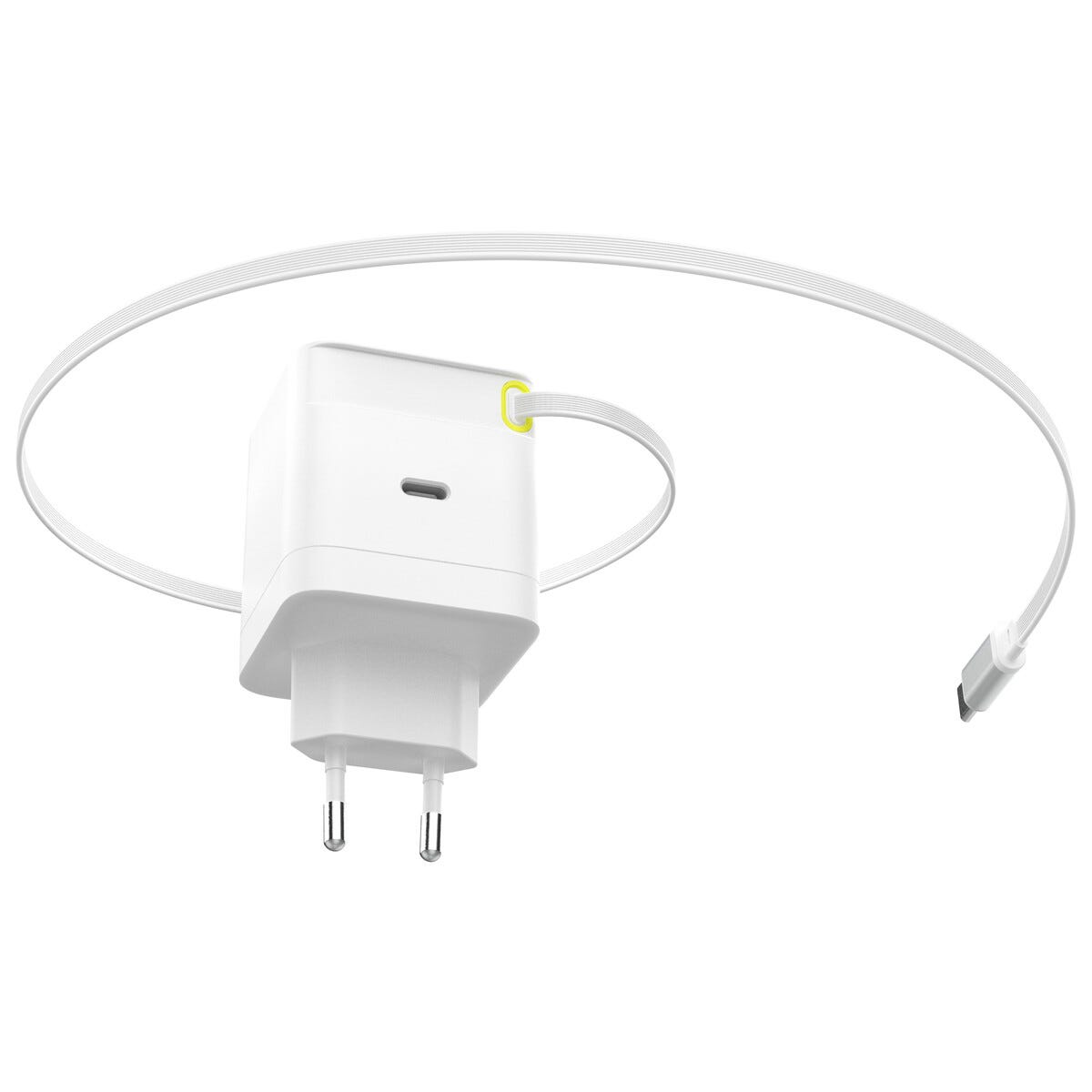 Hurtiglader 65 W med uttrekkbar USB-C-kabel, hvit