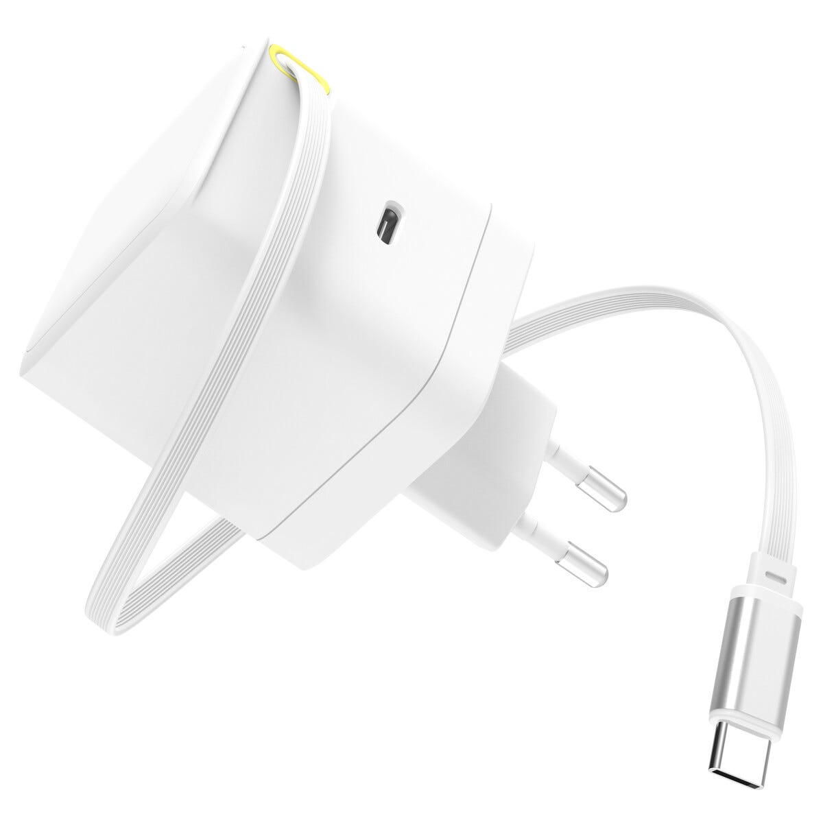 • USB-C-lader med innebygget kabel som rulles inn – slutt på krøllete ledninger.