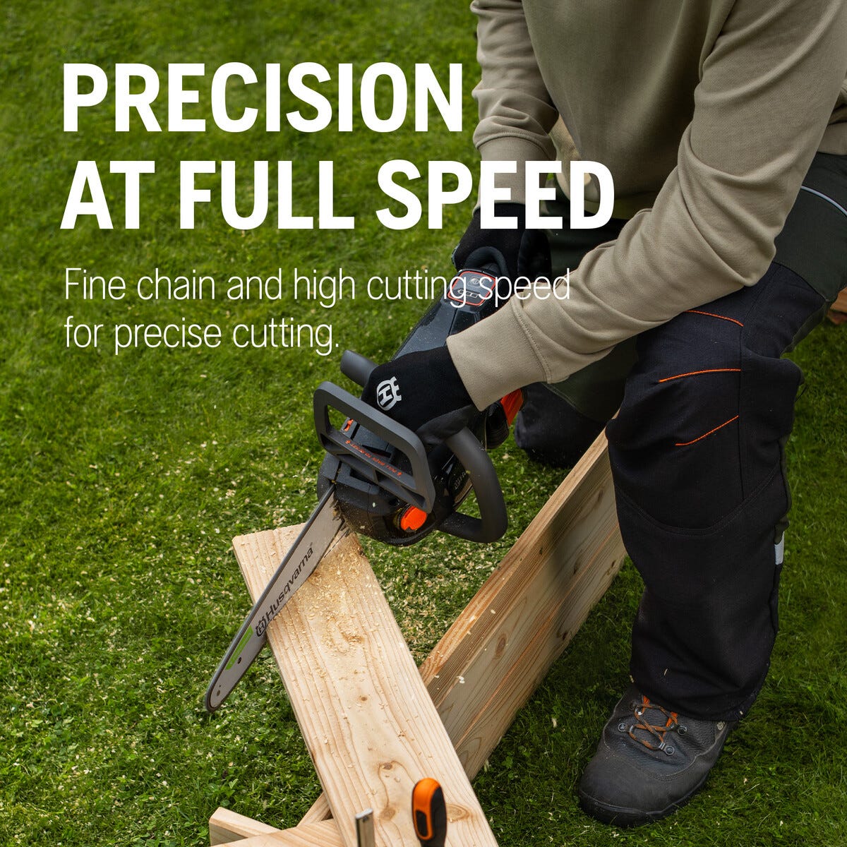 • Effektivt kjede som gir høy skjærehastighet og presise snitt.