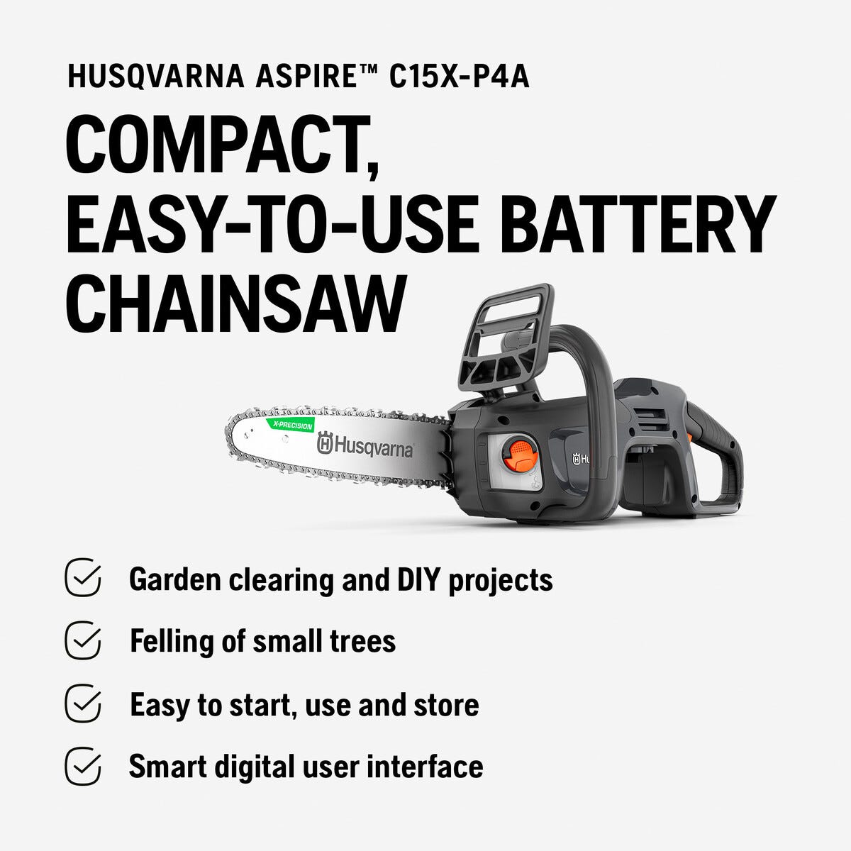 • Husqvarna Aspire C15X – praktisk motorsag med batteridrift.