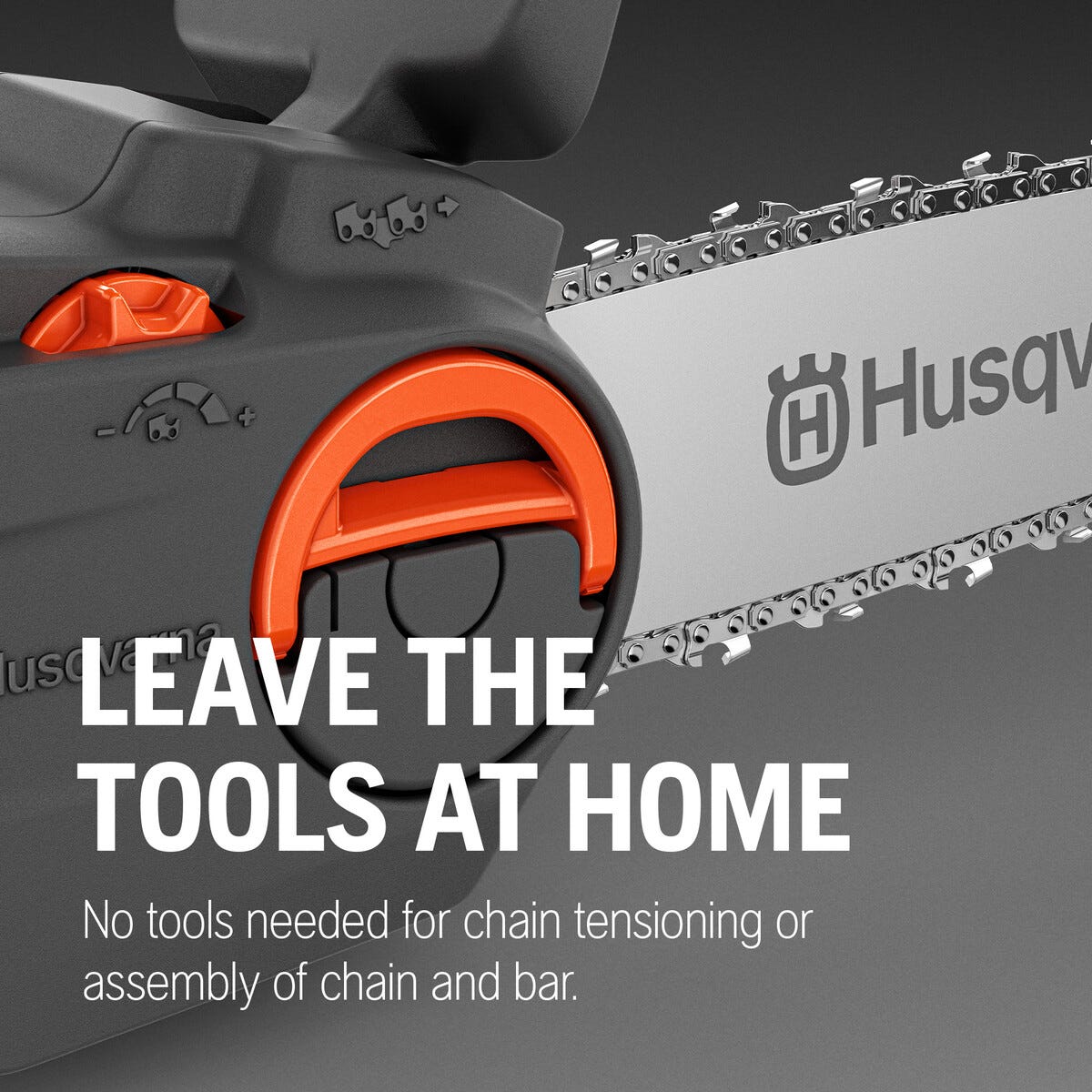 • Kjedespenning uten verktøy gir rask og enkel justering.