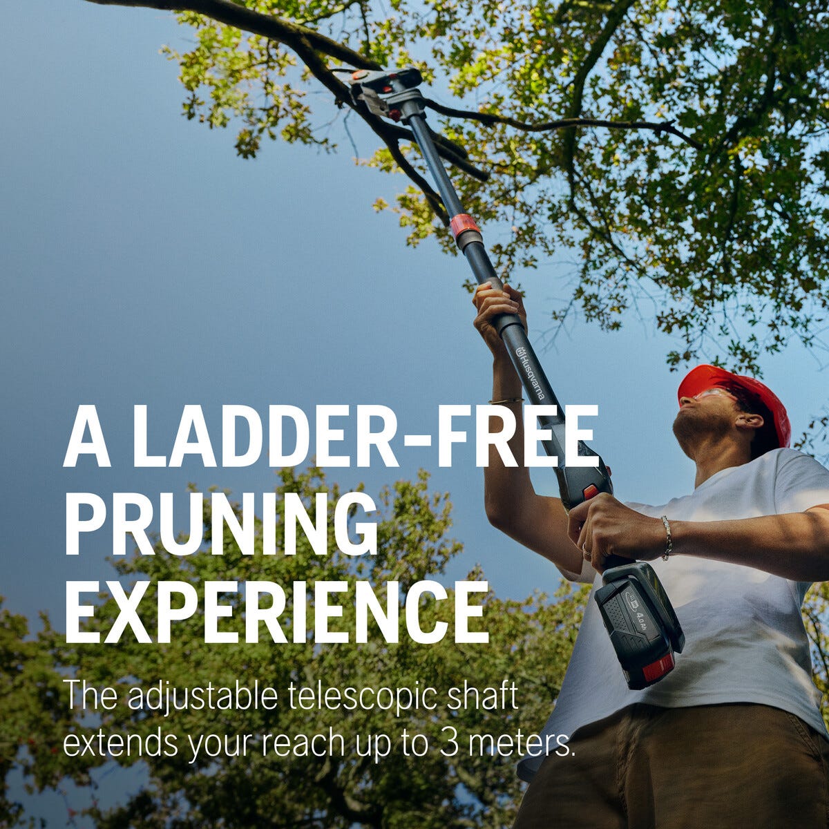 • Effektiv beskjæring uten stige – teleskopskaft opptil 1,7 meter.