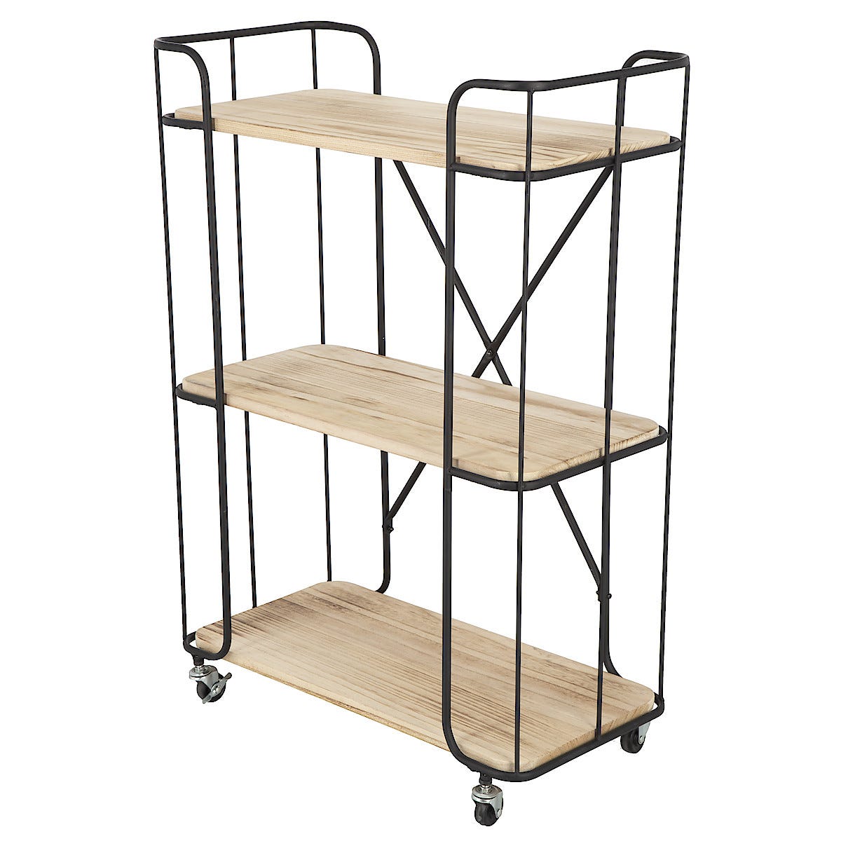 Hylle med hjul, tre/metall