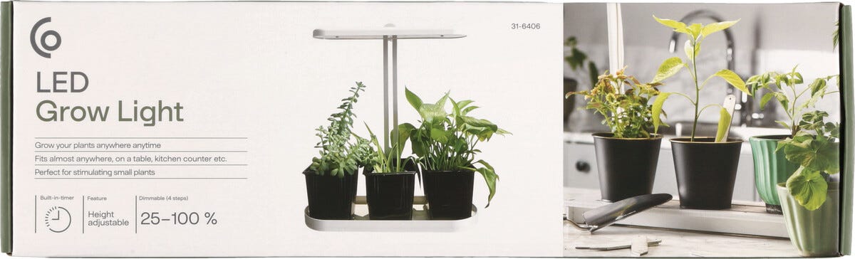 • Dimbart LED-vekstlys med timer (8, 12 eller 16 timer).