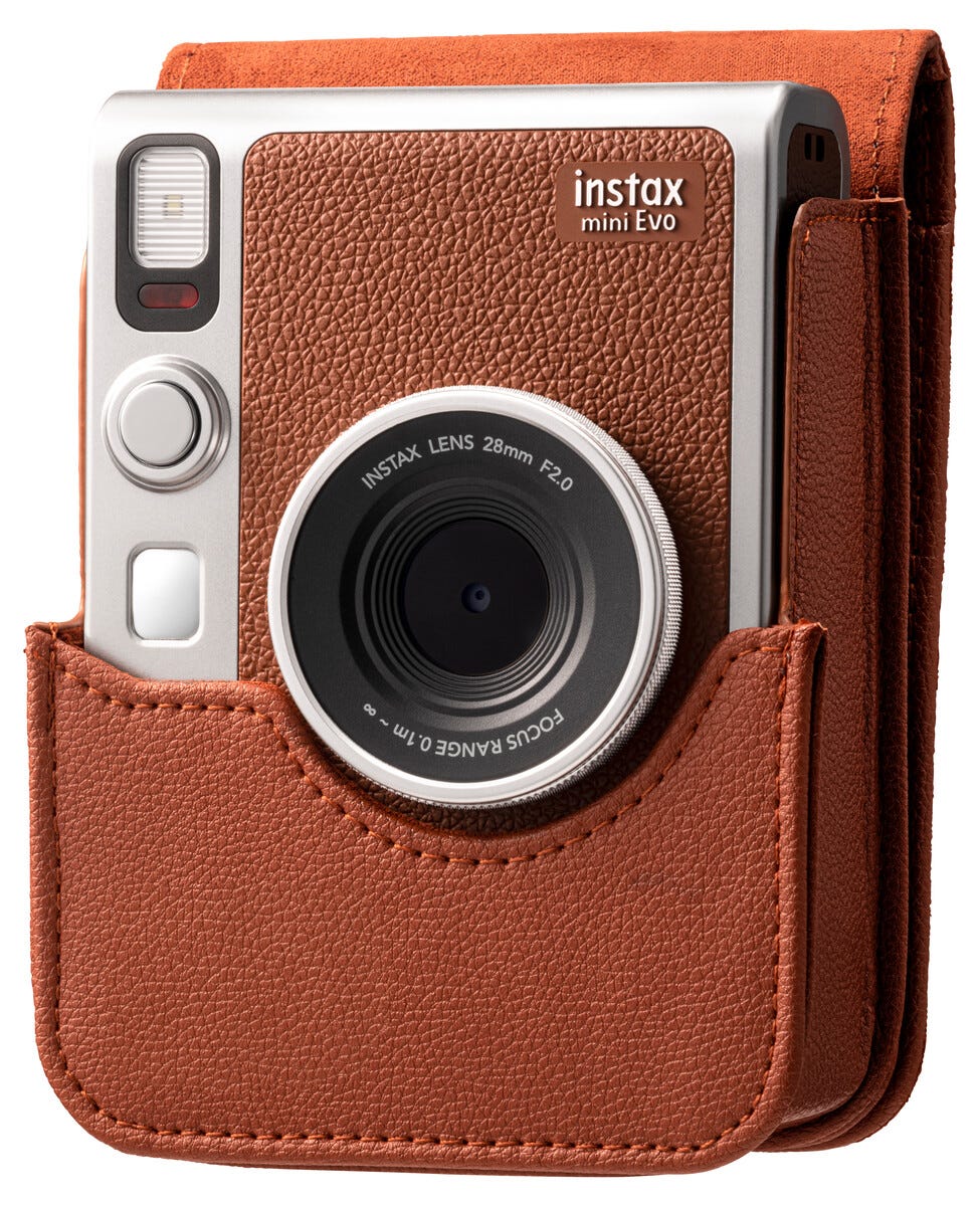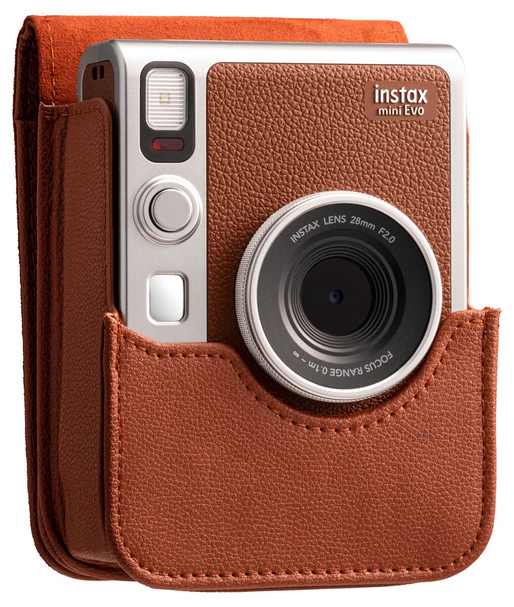 • Instax Mini Evo etui – slankt etui i matchende retroinspirert stil.