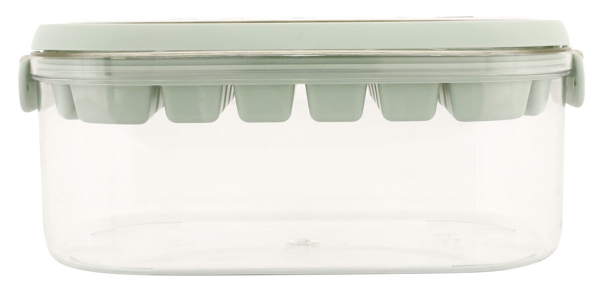 Isbitform med lokk, isboks og skje