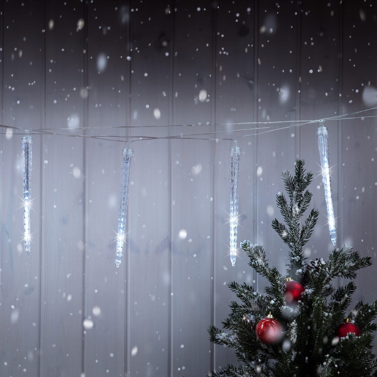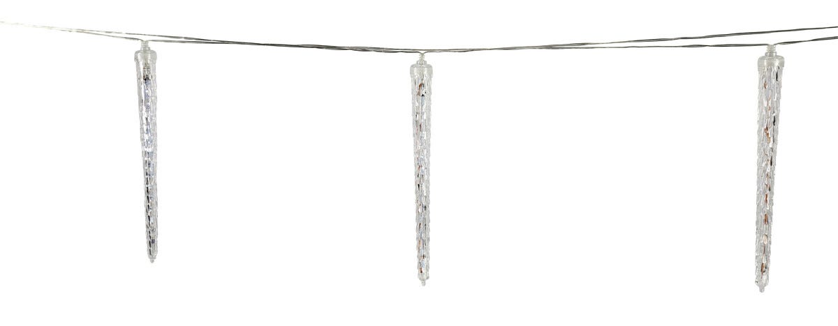 • 10 istapper med fast lys eller effektfullt dryppende skinn, kan brukes både ute og inne.