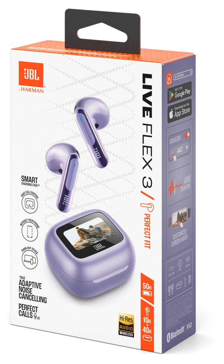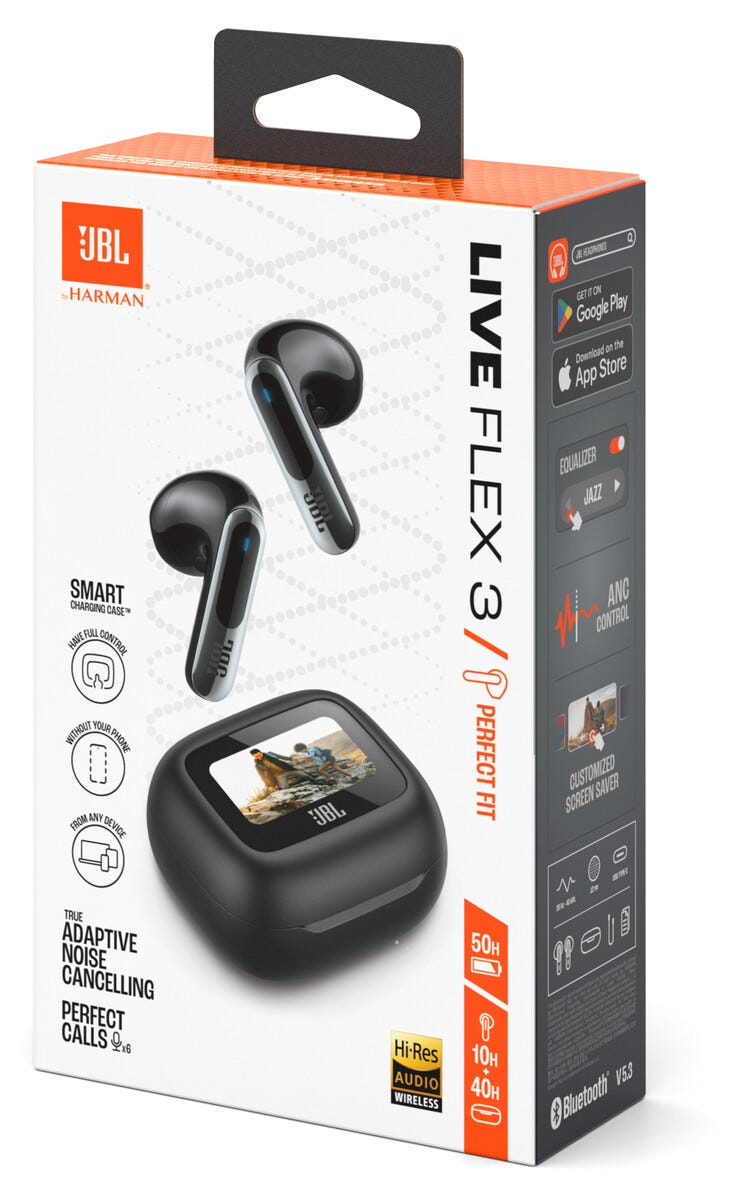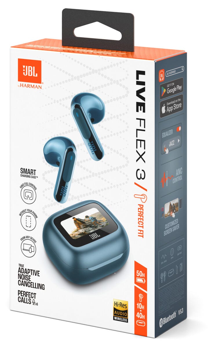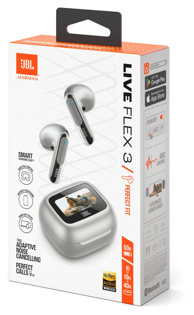 • JBL Live Flex 3 – trådløse in-ear-ørepropper med berørings- og stemmestyring.