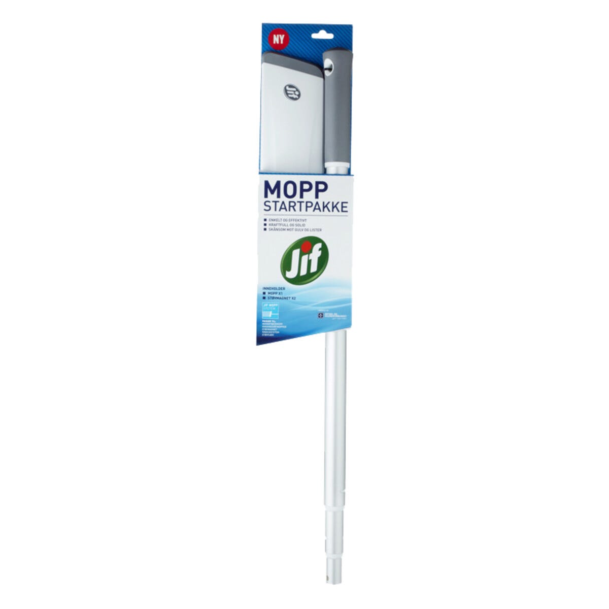 • Jif mopp startpakke med teleskopskaft og 2 tørrmopper.