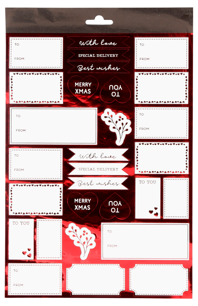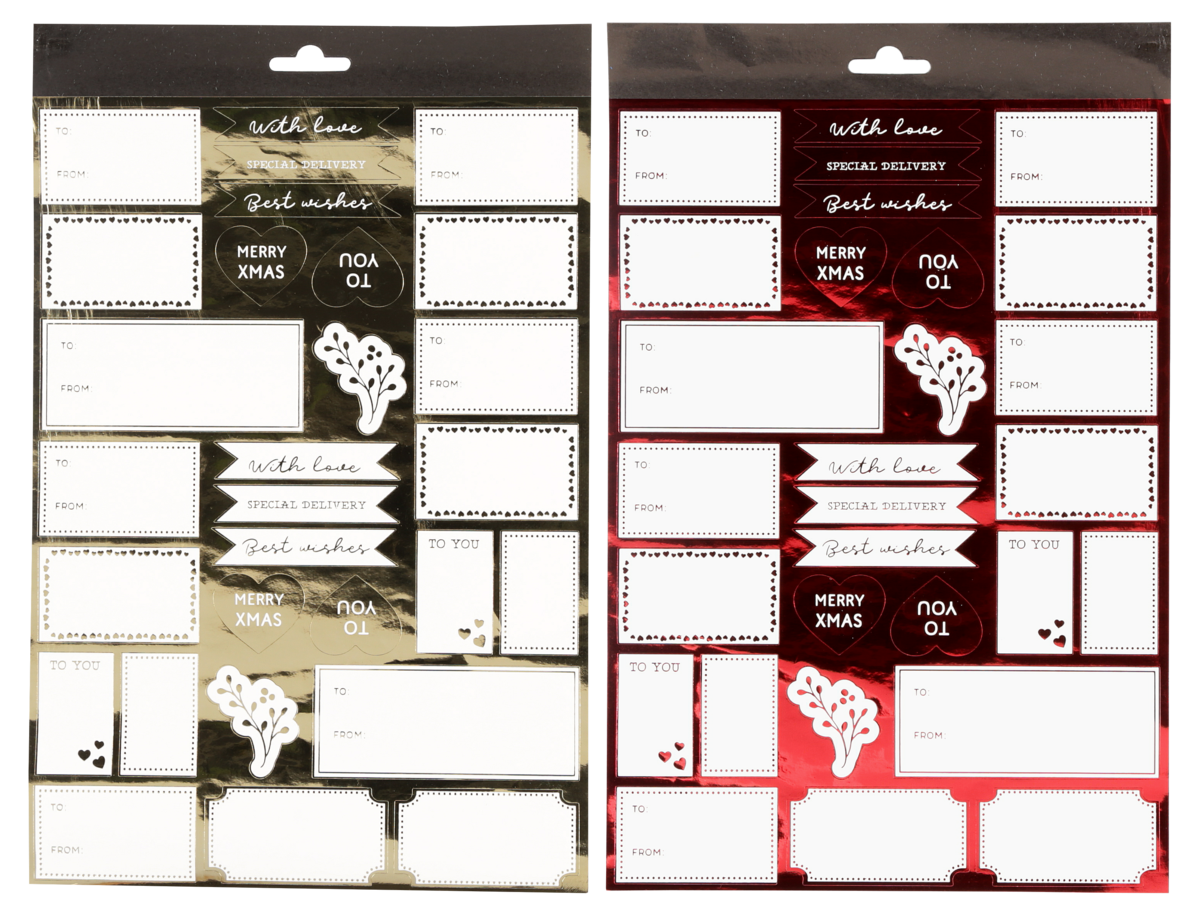 Juleetiketter rød/gull, 40-pakning