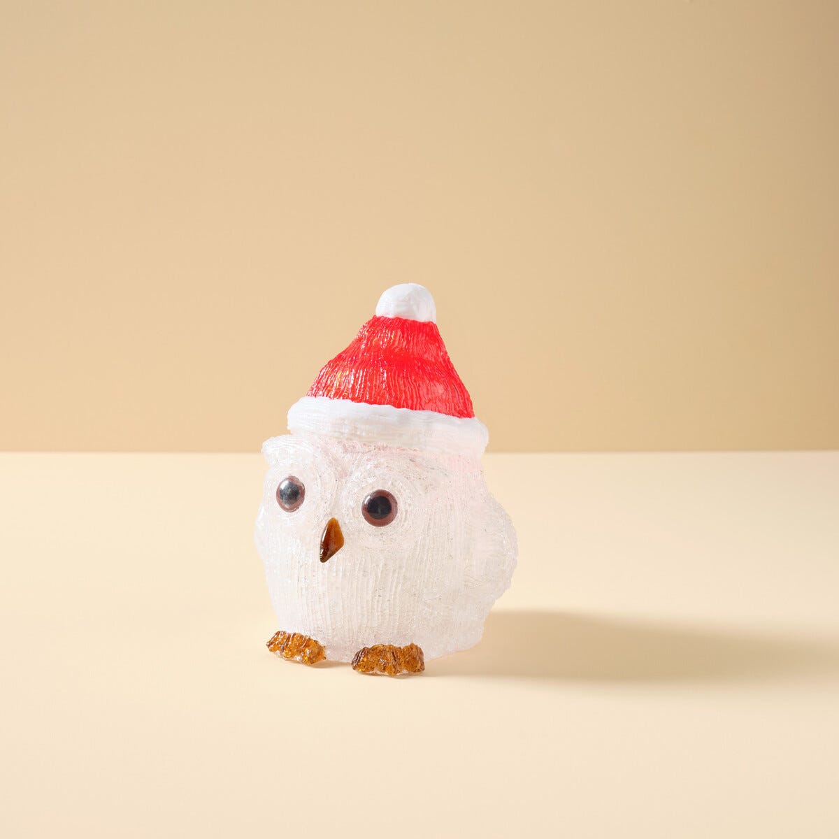 • Sjarmerende ugle med nisselue – batteridrevet julepynt for utendørs bruk.