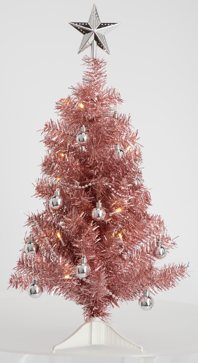Juletre i bordmodell med LED-belysning, rosa